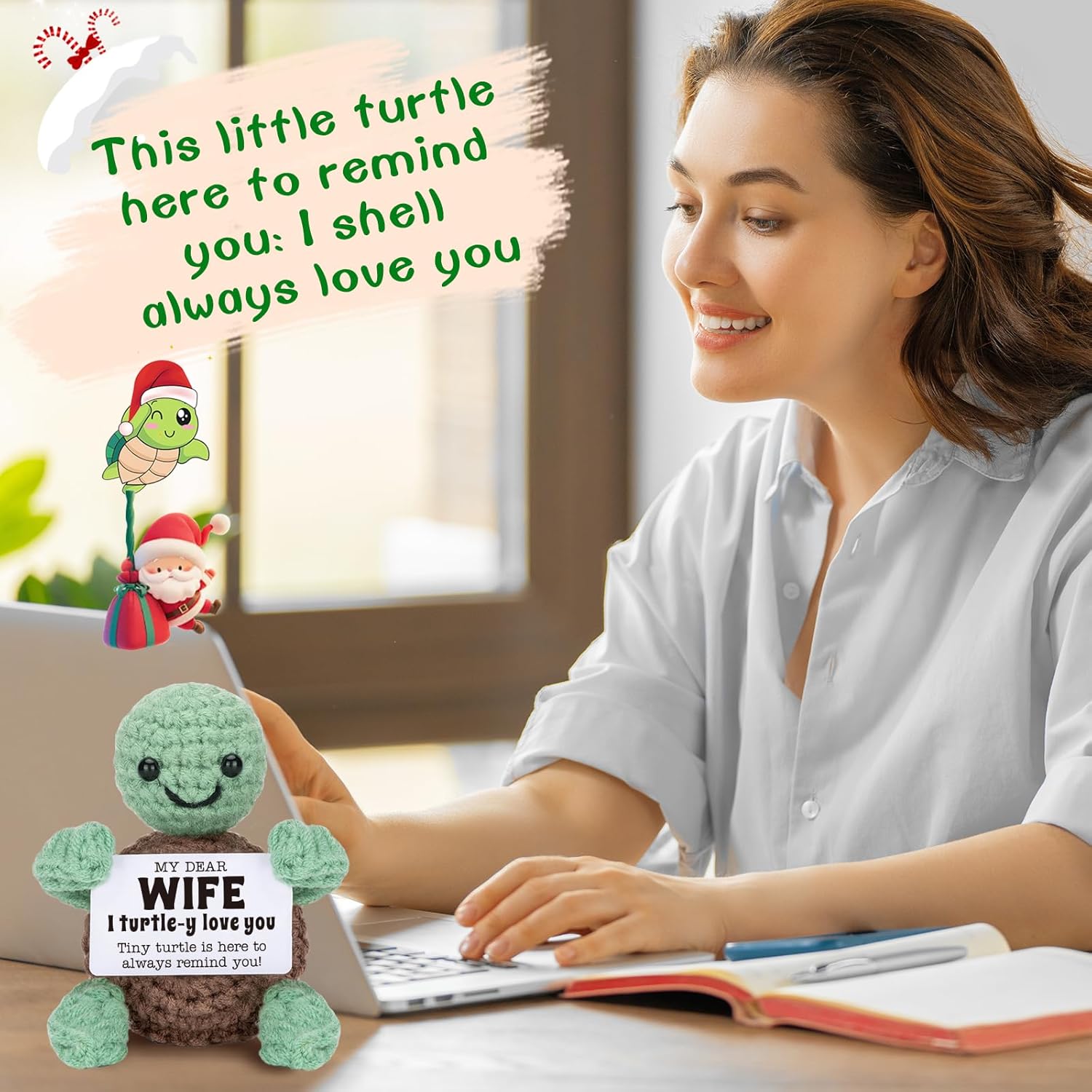 Mini Funny Turtle Wife Gifts from Husband, Christmas Birthday for Wife Wifey Romantic, I Love You Small Cool Cute Stuff Things, Handmade Emotional Positive Crochet Turtle