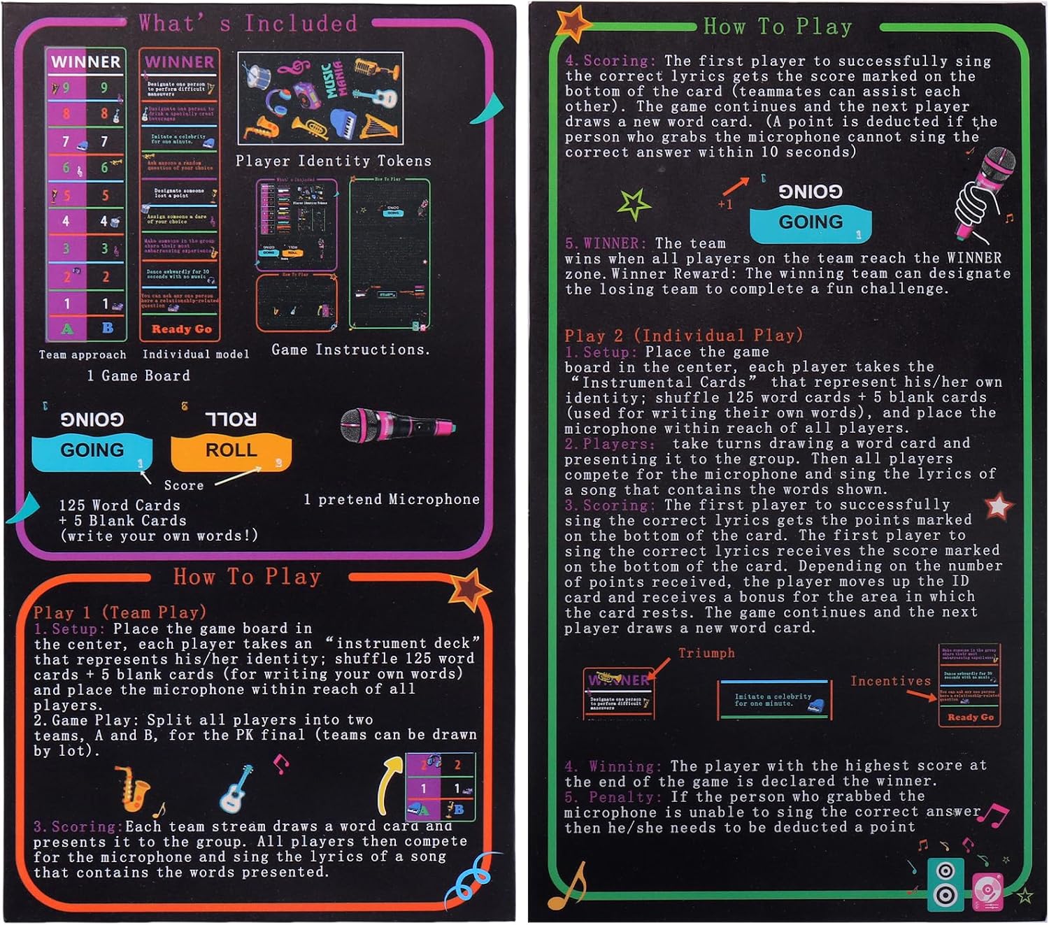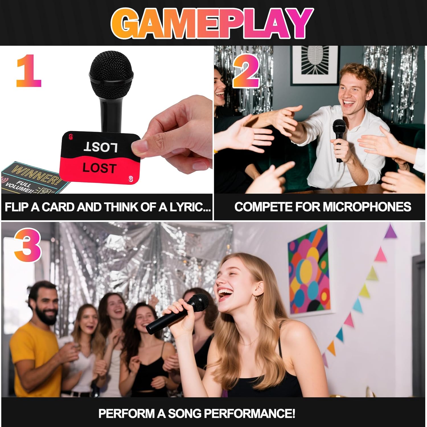 【Fast-Paced Music Fun for 2-10 Players – Perfect for Small & Large Groups!】:This Music Game is the ultimate party game designed to bring friends and family together for unforgettable music battles! Whether you’re hosting a cozy game night or a lively gathering, this hilariously competitive card game keeps everyone engaged. The rules are simple: flip a card, grab the foam microphone, and sing lyrics containing the revealed word—but be quick, or someone else might steal your turn!