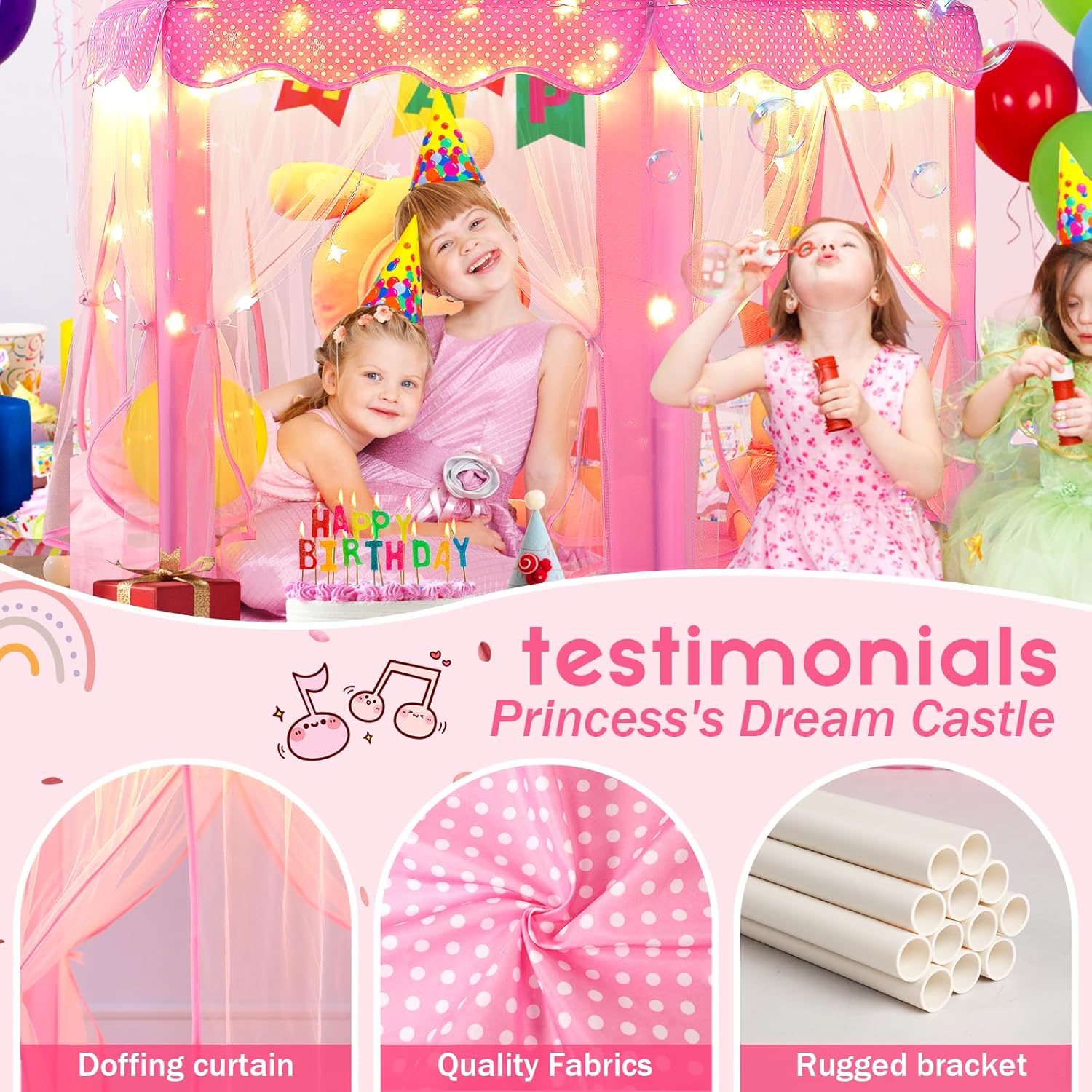 Monobeach Princess Tent Girls Large Playhouse Kids Castle Play Tent with Star Lights Toy for Children Indoor and Outdoor Games, 55” x 53” (DxH)