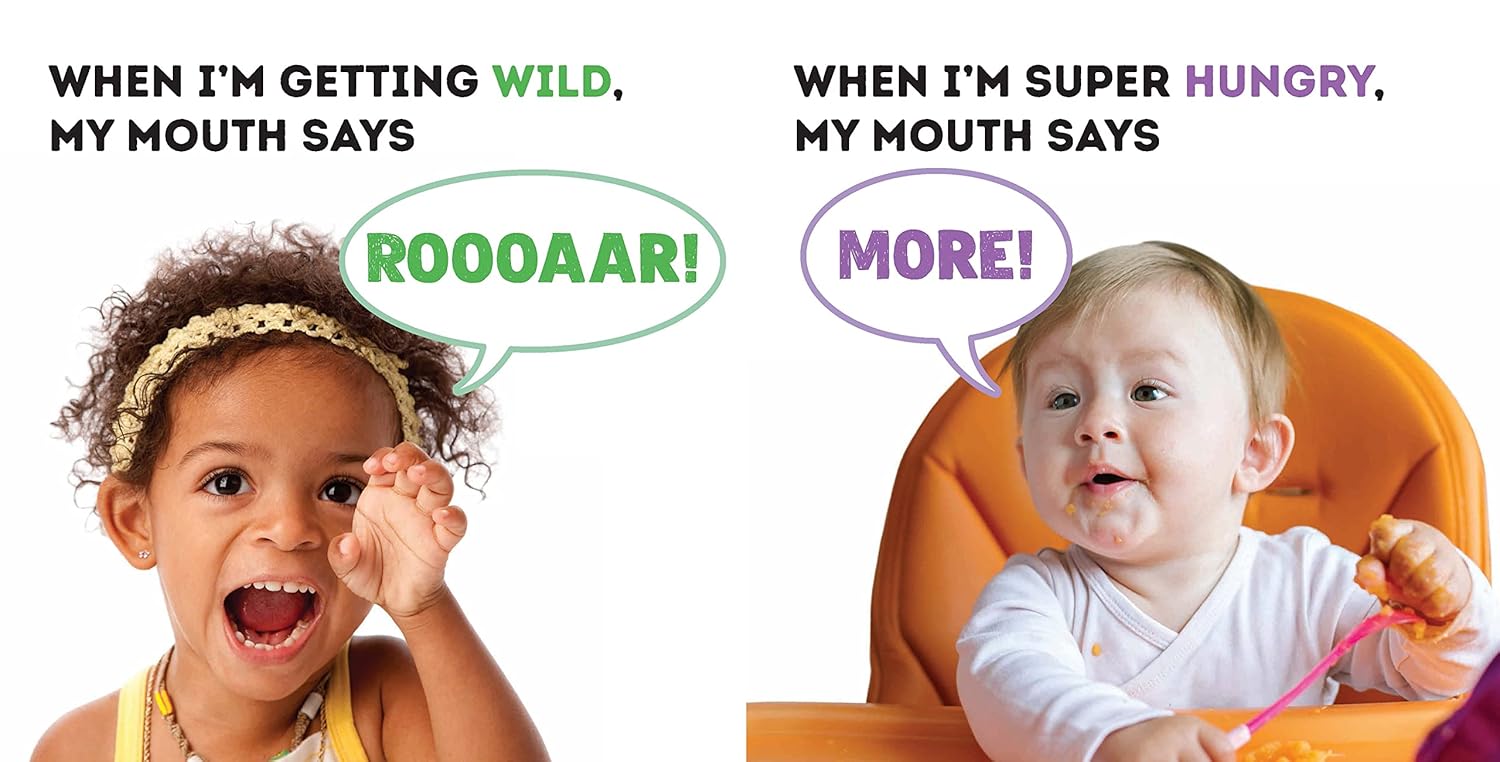 Simple, exciting sounds that are easy for little ones to imitate, and can be used to build bigger wordsRhythm and rhyme to encourage repetition and help keep babies engaged, even before they can understand the textReal photographs that model correct mouth positions and support social emotional learning