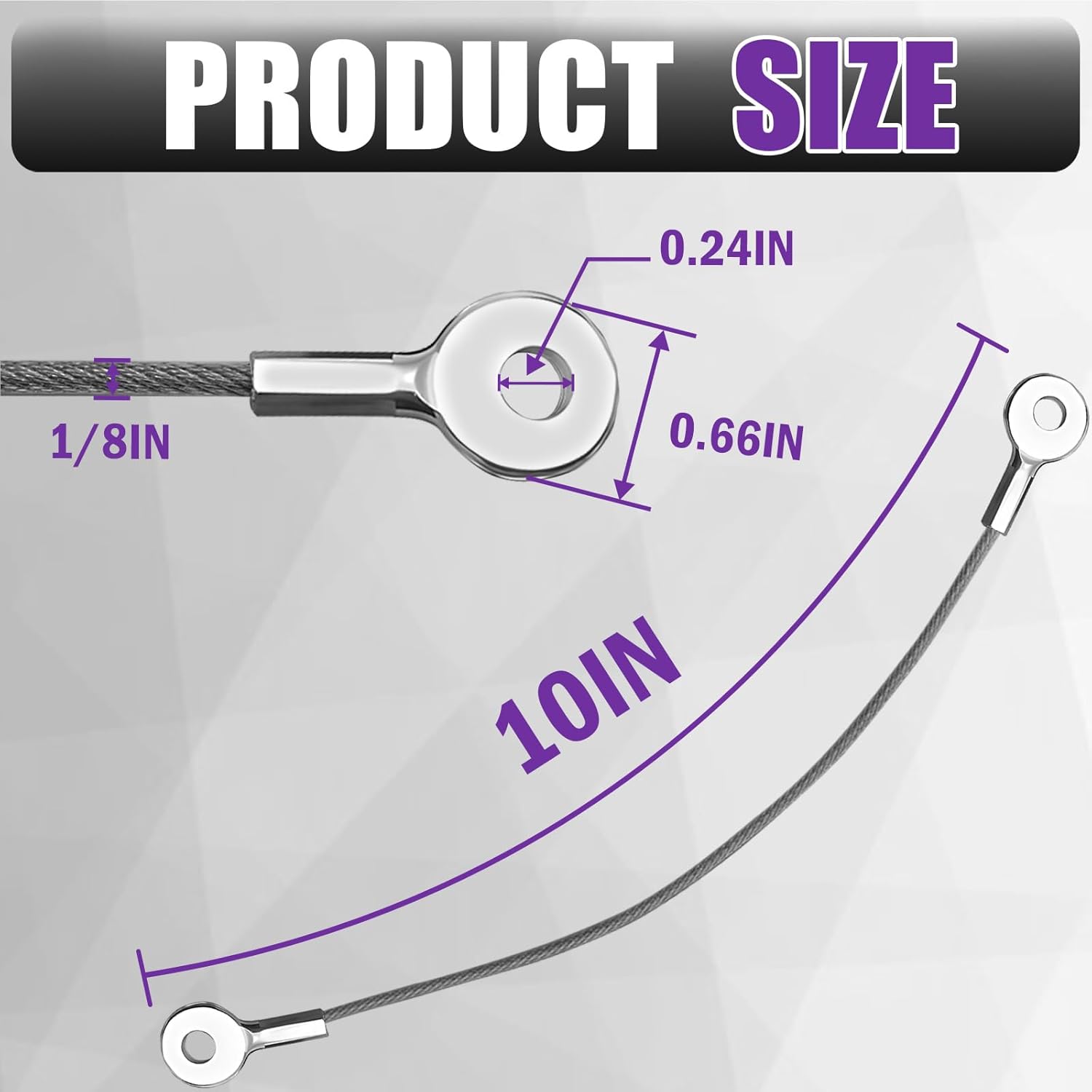 Pre-Made Double Loops:Total length 10 inches (hole center to center) with pre-formed loops (0.24-inch inner diameter). Directly connects clips, locks (padlocks, U-locks, etc.).