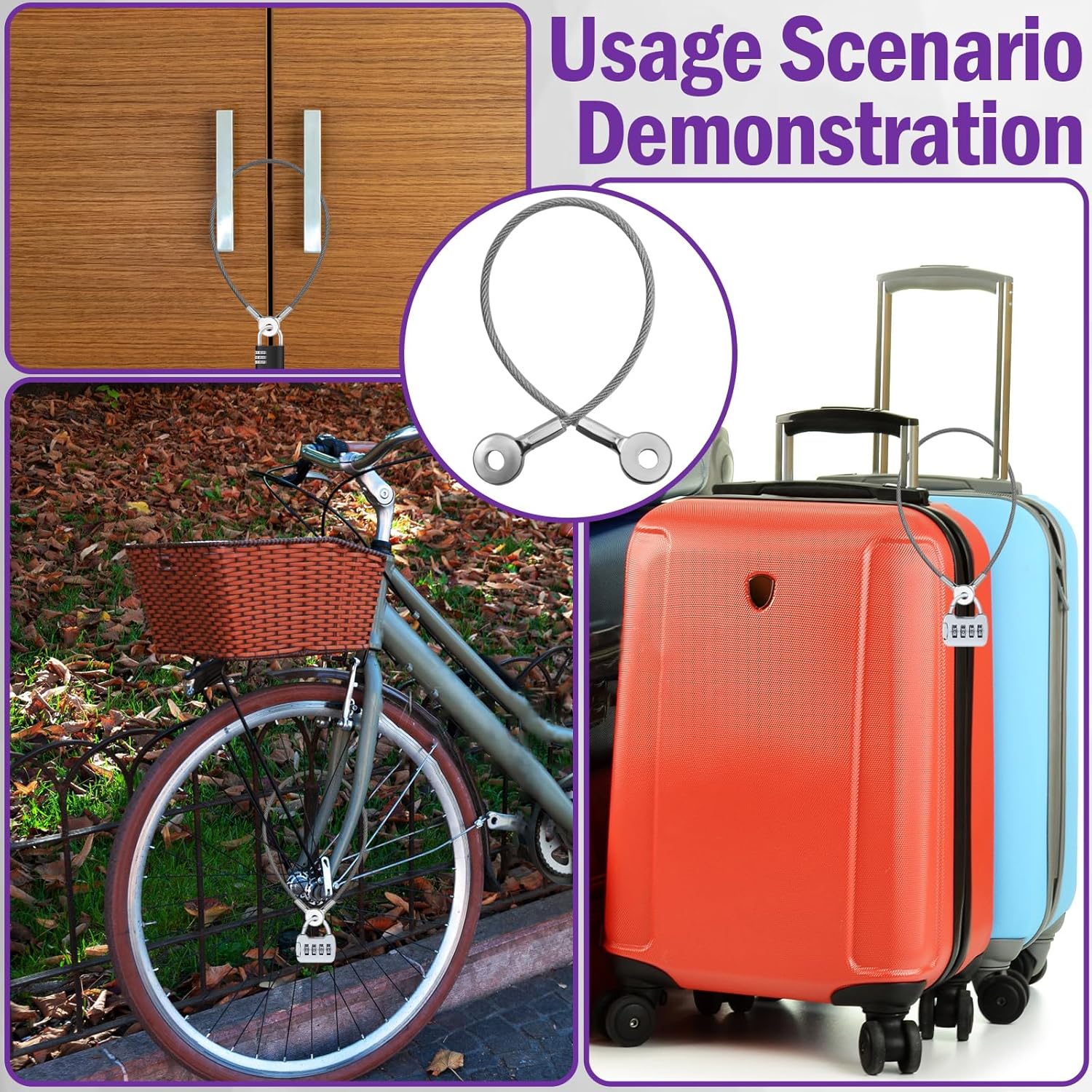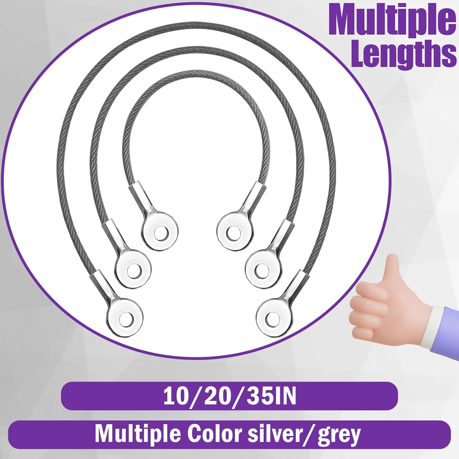 High-Strength Braided Steel: Made of galvanized braided steel with a wear-resistant Vinyl coating, 1/8-inch diameter (including coating). Cut-resistant yet flexible. Reinforced with galvanized iron round eyelets at both ends for secure locking—designed for long-lasting security use.