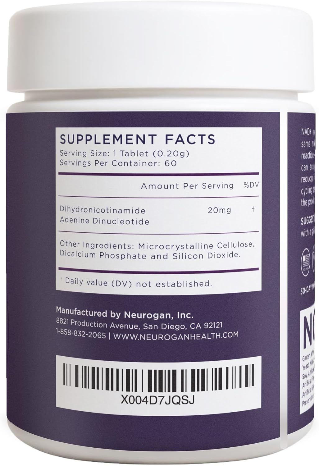 Neurogan NADH Tablets – 20mg Per Serving, 60 Ct – Cellular Energy, Healthy Aging, Cognitive, Heart Health Supplements – Nicotinamide Adenine Dinucleotide Hydride Reduced NAD Supplement