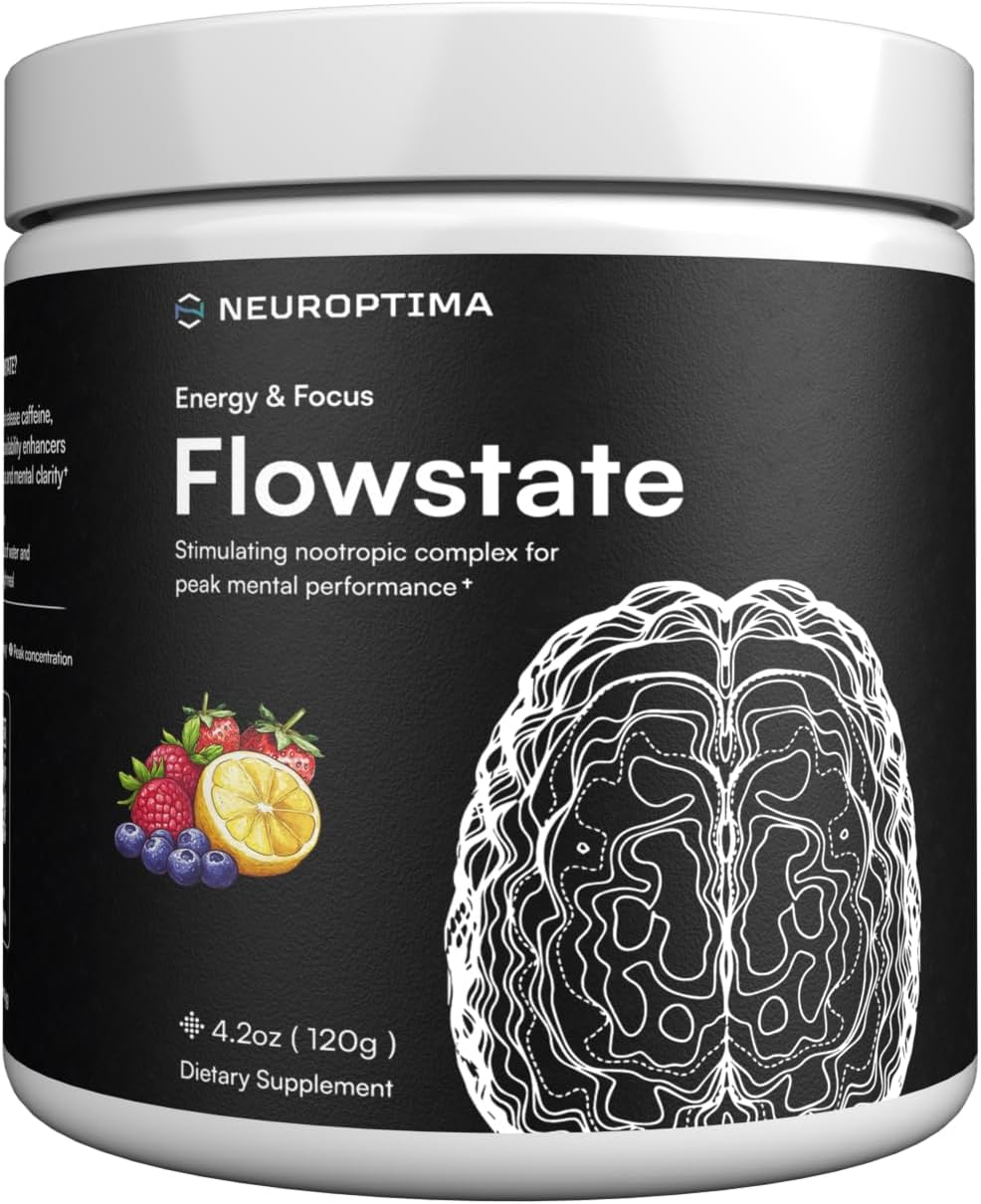 Flowstate by Neuroptima – Clean Energy & Targeted Cognitive Support for Long-Lasting Focus Flowstate by Neuroptima is a premium nootropic supplement crafted to support mental clarity, focus, and steady all-day energy. Its advanced dual-phase energy system delivers 6+ hours of smooth, crash-free fuel, making it ideal for students, professionals, gamers, and anyone who wants to stay sharp throughout the day. Each serving combines 75mg of extended-release caffeine with 75mg of fast-acting caffeine anhydrous for both immediate and sustained energy. To keep your mind calm and focused—not jittery—Flowstate includes 250mg of GABA and 200mg of L-Theanine, creating a balanced and focused mental state. Flowstate is packed with high-quality nootropic ingredients, including: 2000mg N-Acetyl-L-Tyrosine for cognitive function and stress support 800mg nooLVL for improved processing speed and focus Triple-choline complex for memory, clarity, and mental endurance Available in refreshing Raspberry lemonade, Wild berry, Lemon lime, and Cherry lime, this formula is zero-calorie, sugar-free, and made without artificial flavors or colors. Every tub contains 20 servings of brain-boosting support designed to help you stay productive, focused, and mentally energized.