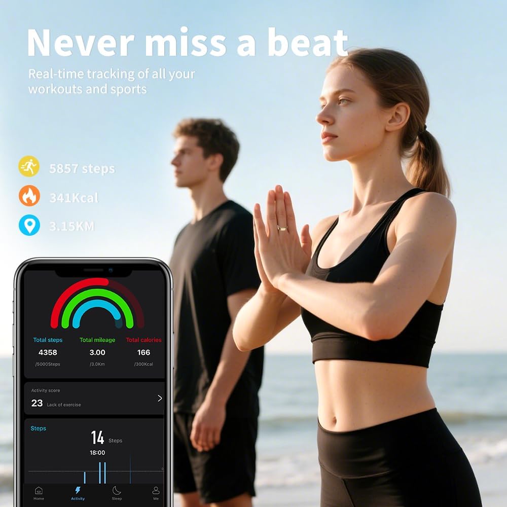 【Perfect Gift for Active Lifestyles】 An ideal gift choice for tech lovers – works as both a fitness tracker ring and heart monitor ring. Share activity data with friends through the innovative health sharing mode.