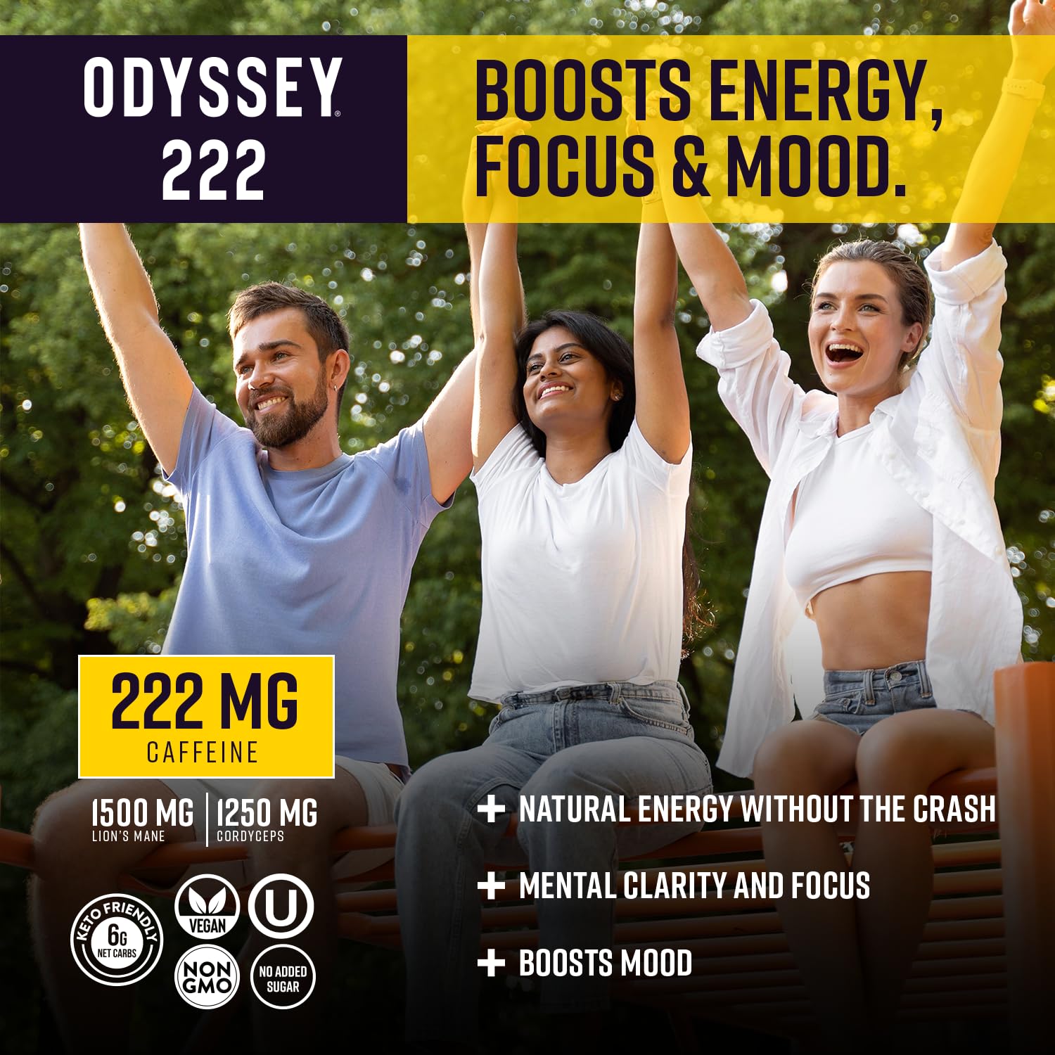 FOCUSED ENERGY WITHOUT THE CRASH – Feel sharp, energized, and uplifted without the jitters. Odyssey 222 delivers smooth, sustained focus and mood support—ideal for workouts, office days, or creative flow.