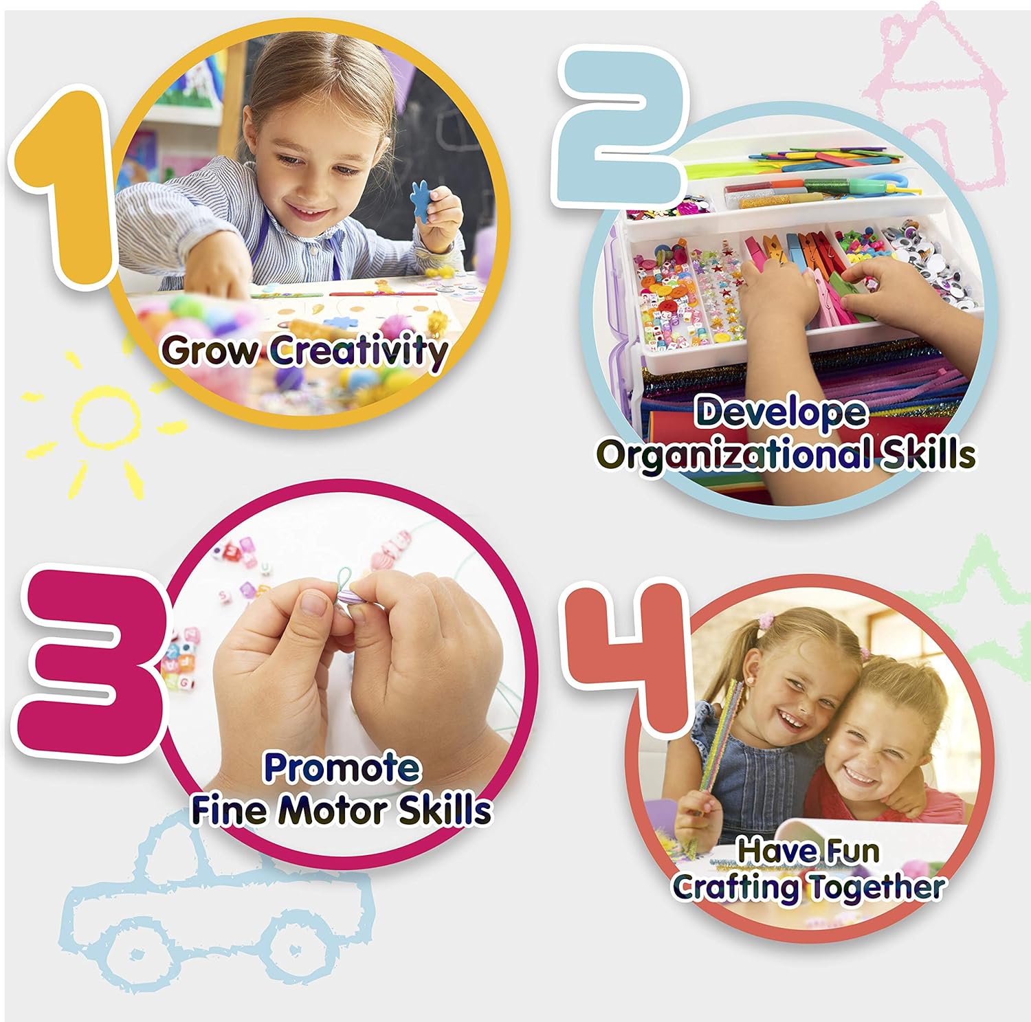 We’ve carefully selected the most useful crafting supplies for kids. No more impractical items lying around, this is the ultimate set.