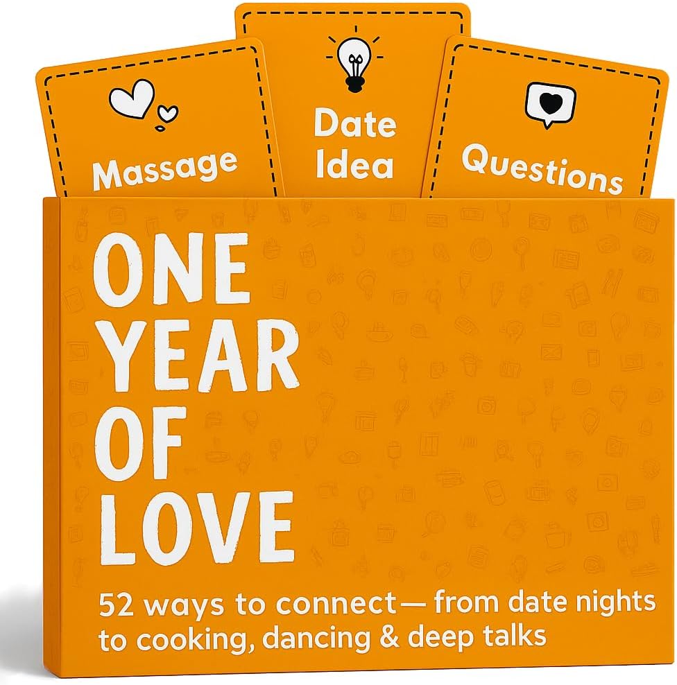 A Year of Connection – 52 simple but meaningful cards, one for every week, designed to help couples reconnect, laugh and rediscover each other without having to plan anything.
