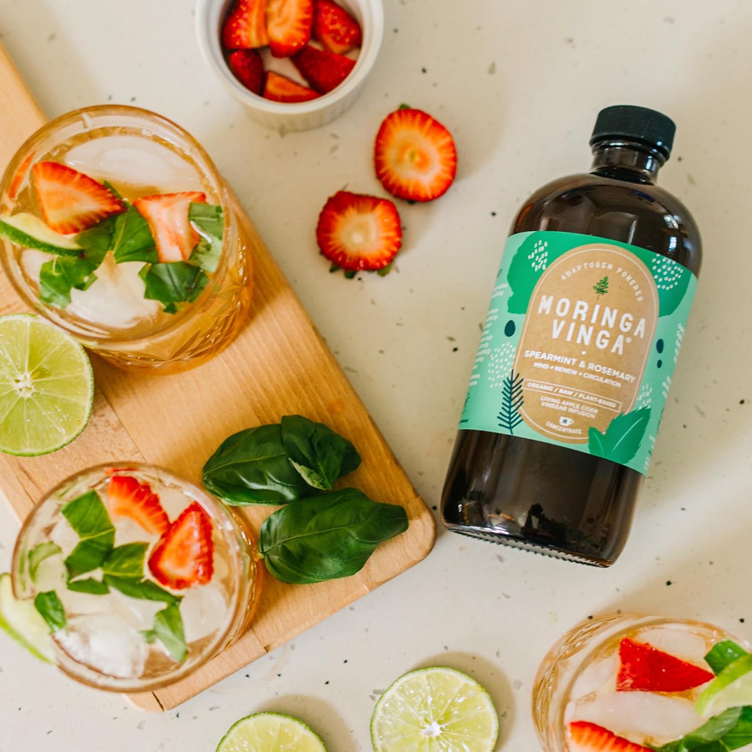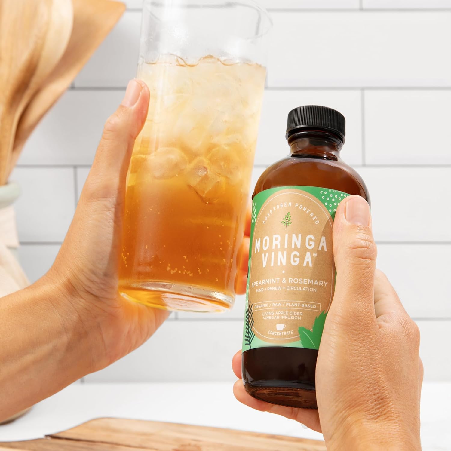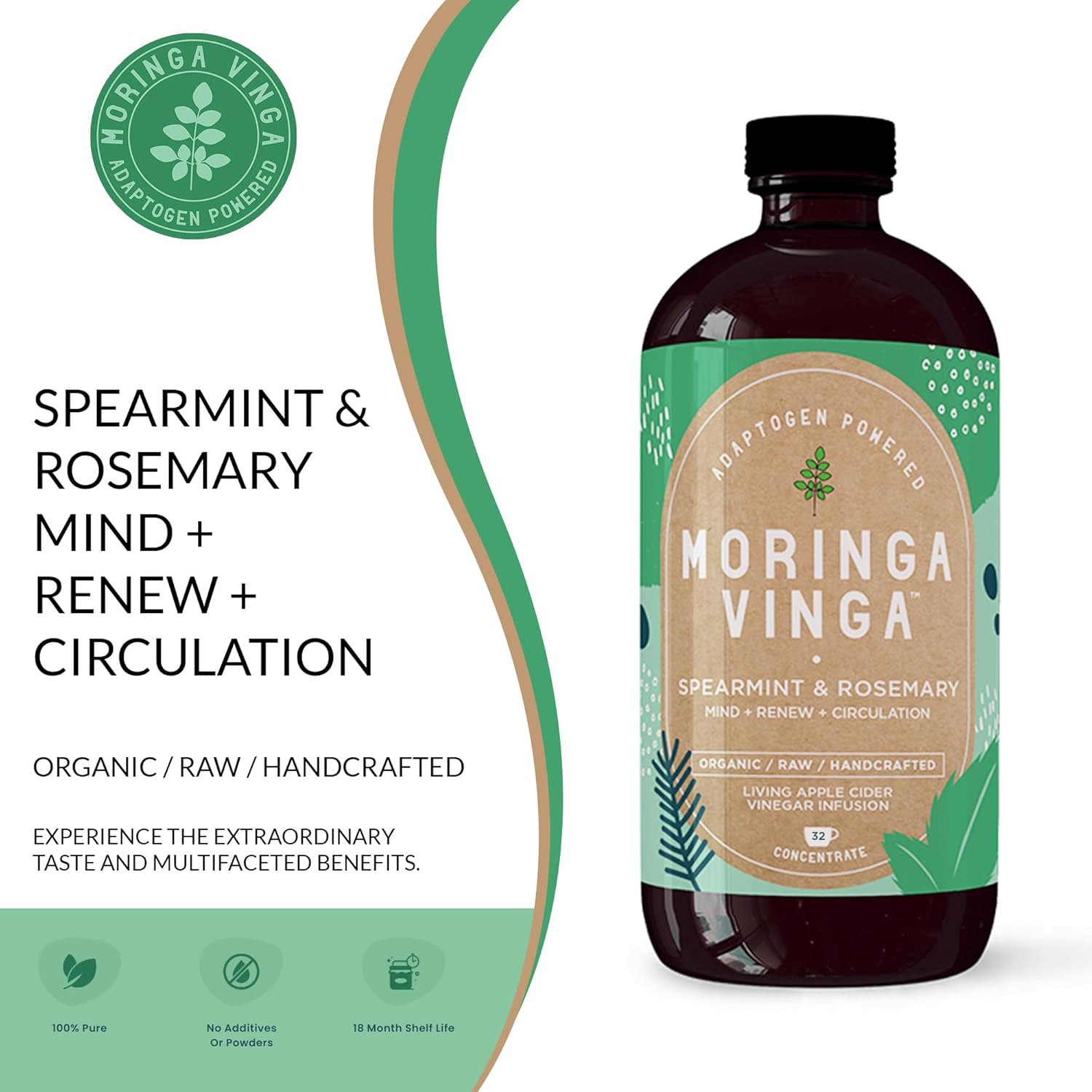 Organic Spearmint & Rosemary Moringa Infusion – Daily Herbal Tonic with Apple Cider Vinegar, Honey | Supports Mental Clarity & Circulation | Non-GMO, 16 oz