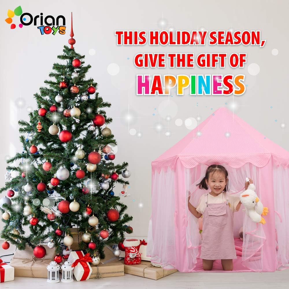 ORIAN Princess Castle Playhouse Tent for Girls with LED Star Lights – Indoor & Outdoor Large Kids Play Tent for Imaginative Games – ASTM Certified, 230 Polyester Taffeta. Pink 55″x53″.