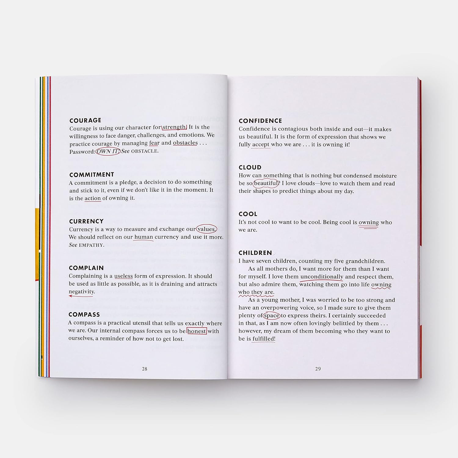 The words included in this book are ones that have been key to DVF attaining self-awareness and realization, the fuel for all her accomplishments personally and professionally. Own It is an A – Z dictionary of life-enhancing vocabulary that is the basis of her accessible and empowering philosophy. It is a true manifesto, a compilation of words that together will empower you to attain the satisfaction and serenity you have always wanted.