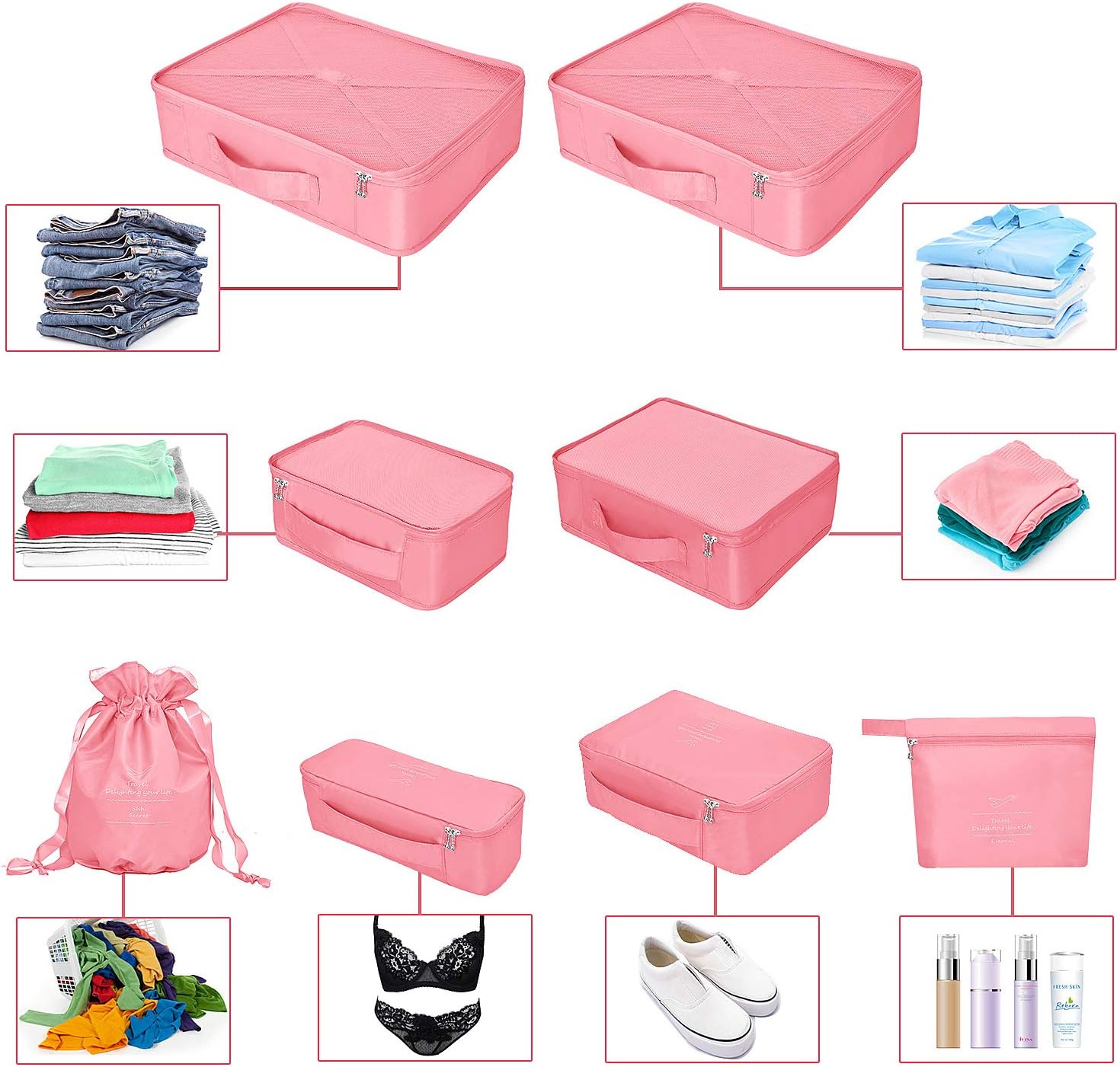 Packing Cubes 8 Sets Travel Luggage Organizers Include Waterproof Shoe Storage Bag Convenient Packing Pouches for Traveller (Peach pink)