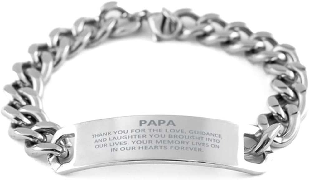 Papa Remembrance Cuban Chain Stainless Steel Bracelet, Thank You for The Love, Guidance, and Laughter, Best Memorial Gifts for Loss of Loved One, Sympathy Gifts for Men Women