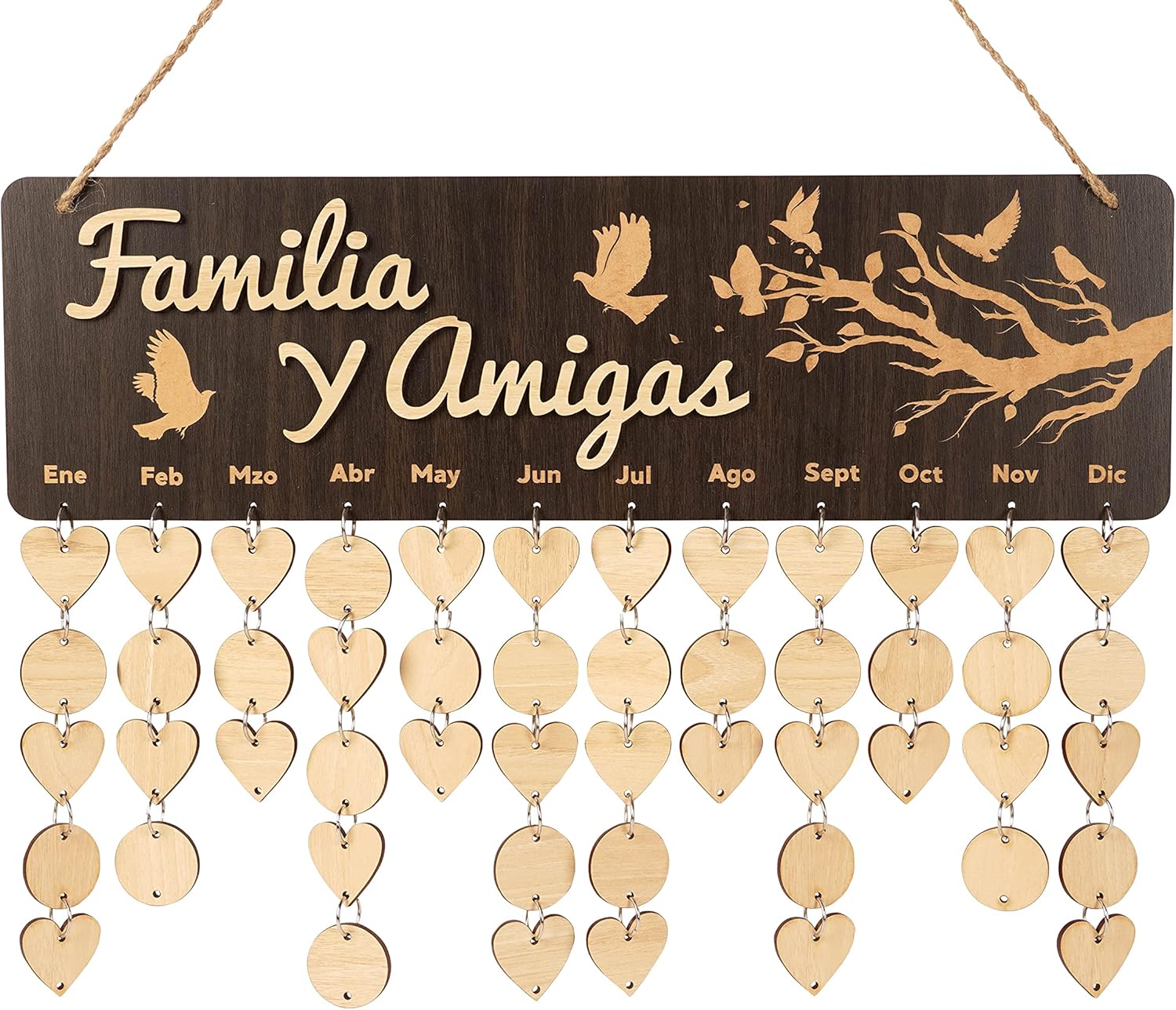 ✅ EASY TO USE: All you need to do is write the names of your friends or family members and special dates on the Pre-drilled round or heart tags, then use silver metal rings to link them all together. Lastly, hang the tags you have finished under the appropriate month. All of the family birthdays at a glance!
