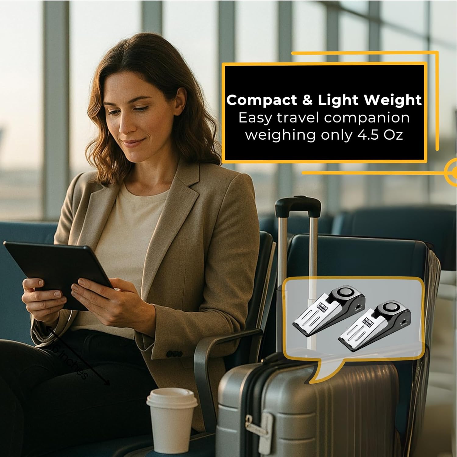 COMPLETE 2-IN-1 TRAVEL SECURITY KIT – Bundle includes a portable door lock and 120dB door stop alarm for layered protection in hotels, Airbnb rentals, dorms, apartments, and home. Works with most inward-opening doors.
