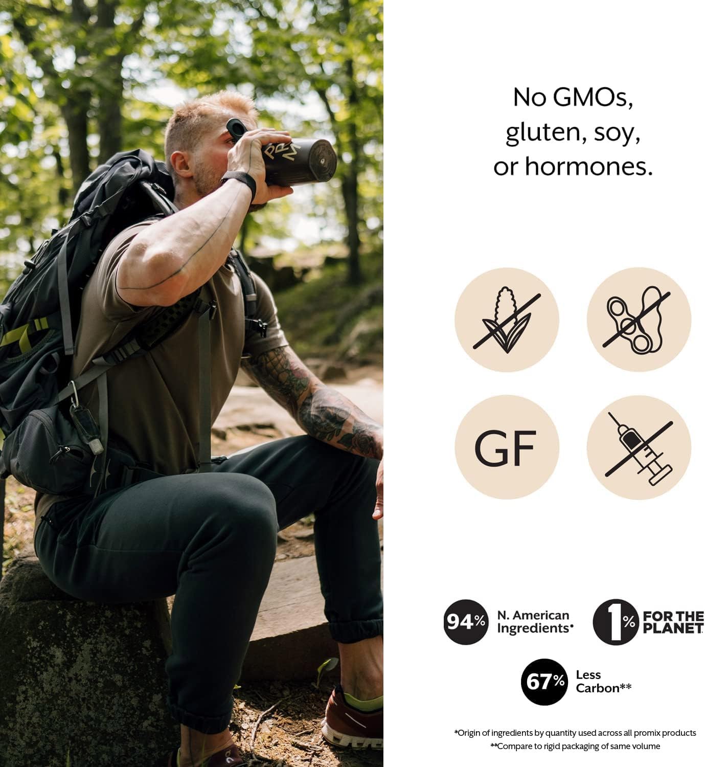 Seriously Clean: All Promix products are free of gluten, soy, GMOs, hormones, antibiotics, refined sugar, artificial sweeteners, stevia, gums, fillers, and bleach. 94% of ingredients sourced from North America. Partner of 1% for the Planet. Produced in facilities using GMP standards.