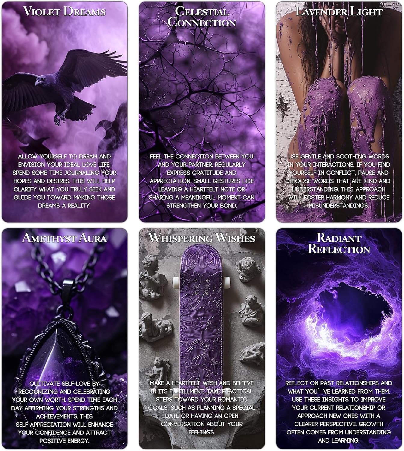 Purple Love Oracle Cards 54 Romantic Love Oracle Deck for Twin Flames, Soulmates, Emotional Guidance & Shadow Work