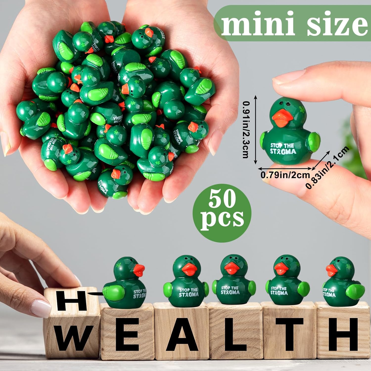 Realspring 50 Pcs Mental Health Awareness Duck Decor Mental Health Awareness Items Mini Resin Duck Figurine Miniature Animals Figurine Gifts for Family Coworkers Fundraiser(Green)