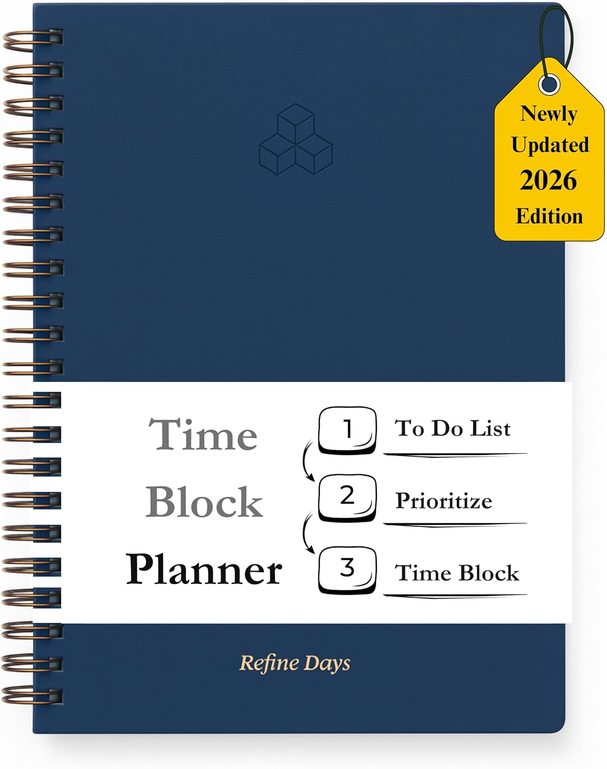 Refine Days Undated Daily Planner – Time Blocking Planner & ADHD Planner. To Do List, Hourly Schedule, Daily and Monthly Agenda. Time Management & Productivity Planner. Spiral Hardcover Notebook. A4.