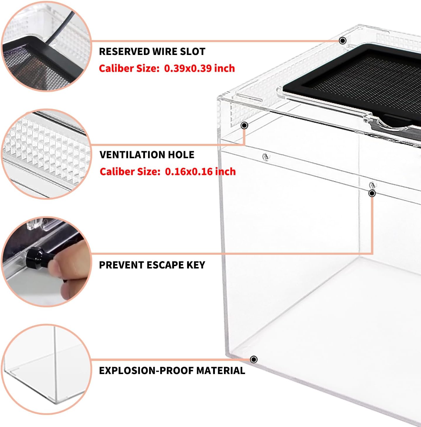 Plenty of ventilations holes on top and side keeps fresh air flow into the habitat, which are good for your lovely pet growth.