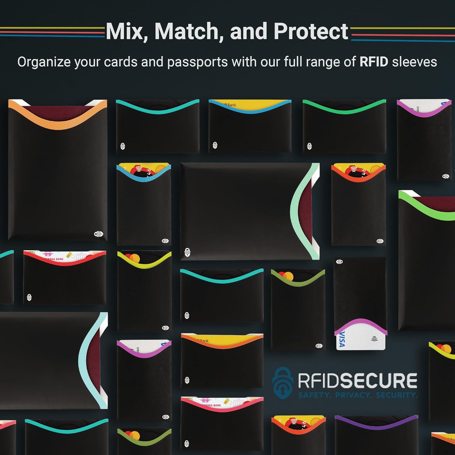RFID sleeves protect credit cards, debit cards, passports, and other RFID-enabled cards.