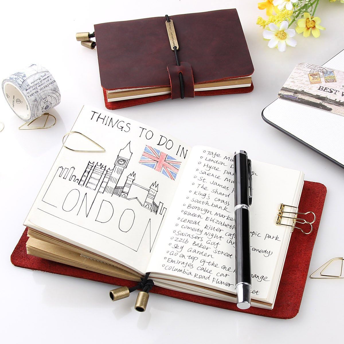 ✔PREMIUM THICK PAPER – 100gsm archival-quality pages made from acid-free paper which resists damage from light and air. The leather travel notebook is designed to avoid ink bleeding through and feathering, suitable for most pen types.