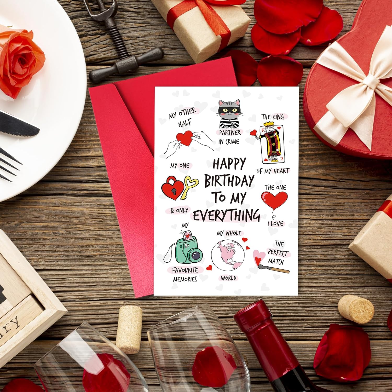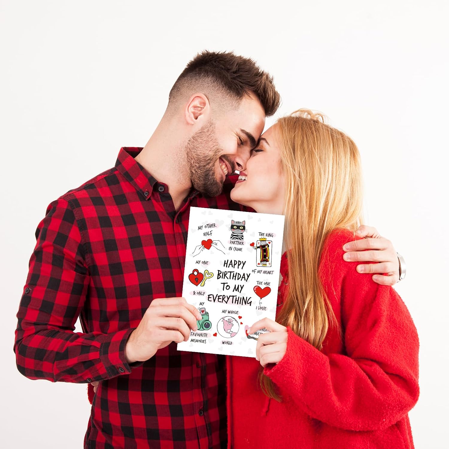 Romantic Happy Birthday Card for Boyfriend, Cute Birthday Greeting Card for Husband, Happy Birthday to My Everything Gift Idea