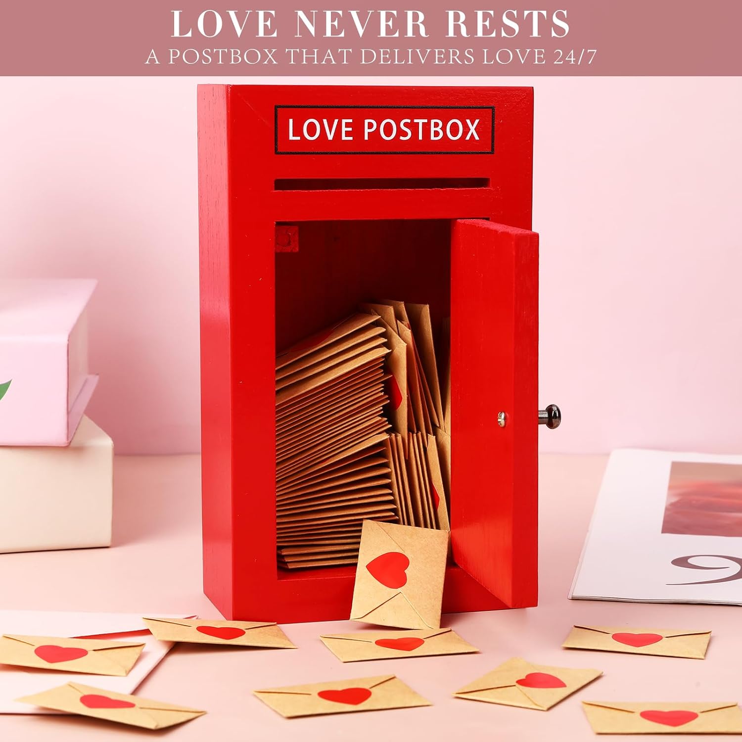 CHARMING POSTBOX WHERE LOVE NEVER SLEEPS: Looking for an unconventional gift for your loved one? Our love postbox is the great way to surprise your cherished person. With its charming design, featuring “Last Collection: Monday to Sunday 12:00 pm, 24/7, 365,” it embodies the idea that love never rests. It is a heartfelt way to collect and treasure your love notes, adding a unique touch of whimsy and romance to your relationship.