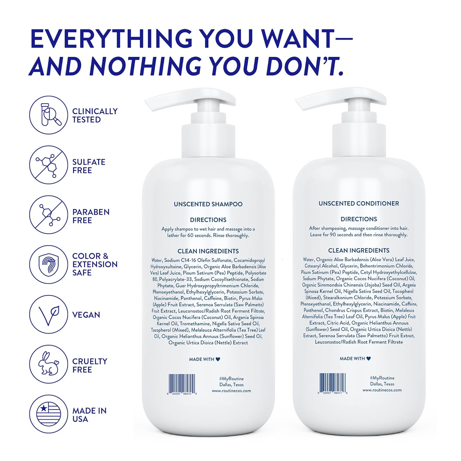 At Routine Wellness, our mission is simple: to create hair care products that are effective, easy to use, and loved by everyone. We thoughtfully formulate each product with only the ingredients we trust—ones we use ourselves. That means you’ll never find harmful chemicals like aluminum, parabens, phthalates, or sulfates in our formulas. Instead, we deliver pure, high-quality ingredients that nurture your wellness with every use.
