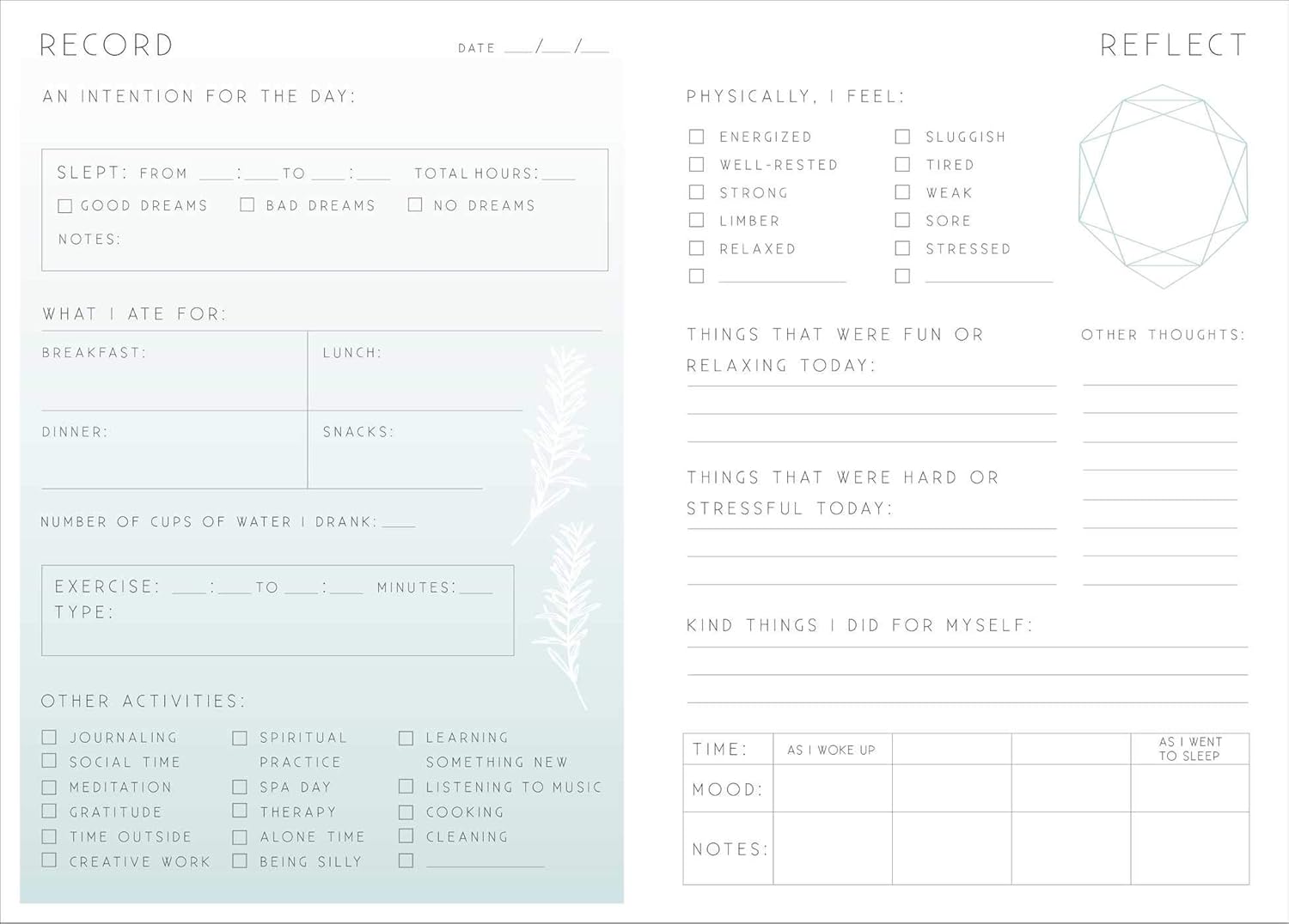The perfect anxiety relief or inspirational gift for women and men, this wellness journal creates a diary of positive thoughts and helpful self-care routines to be a source of inspiration any time.