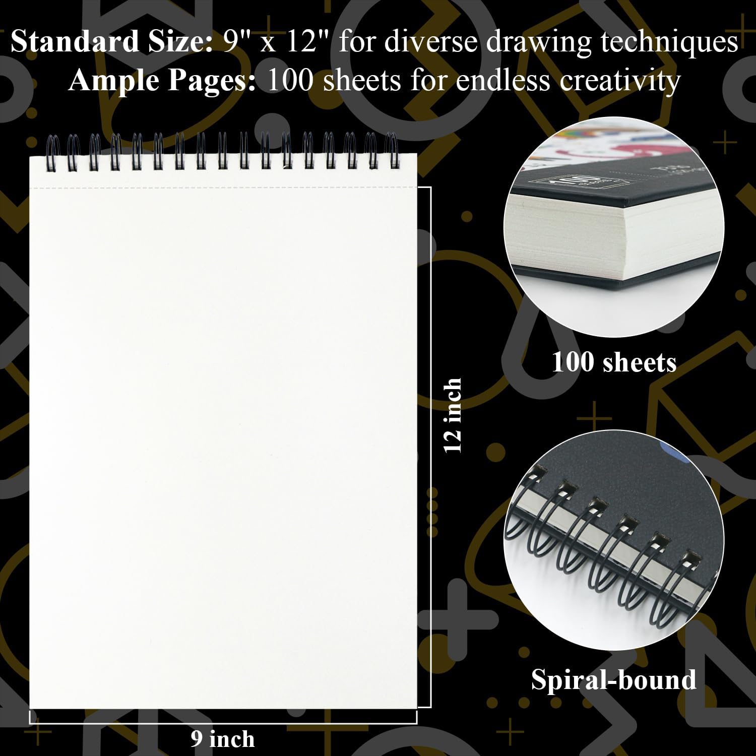 Stocking Stuffers for Kids, 9″ x 12″ Spiral Bound Sketch Book, 73 lb / 120 gsm Drawing Paper, 1-Pack of 100 Sheets, Art Supplies for Kids 9-12.