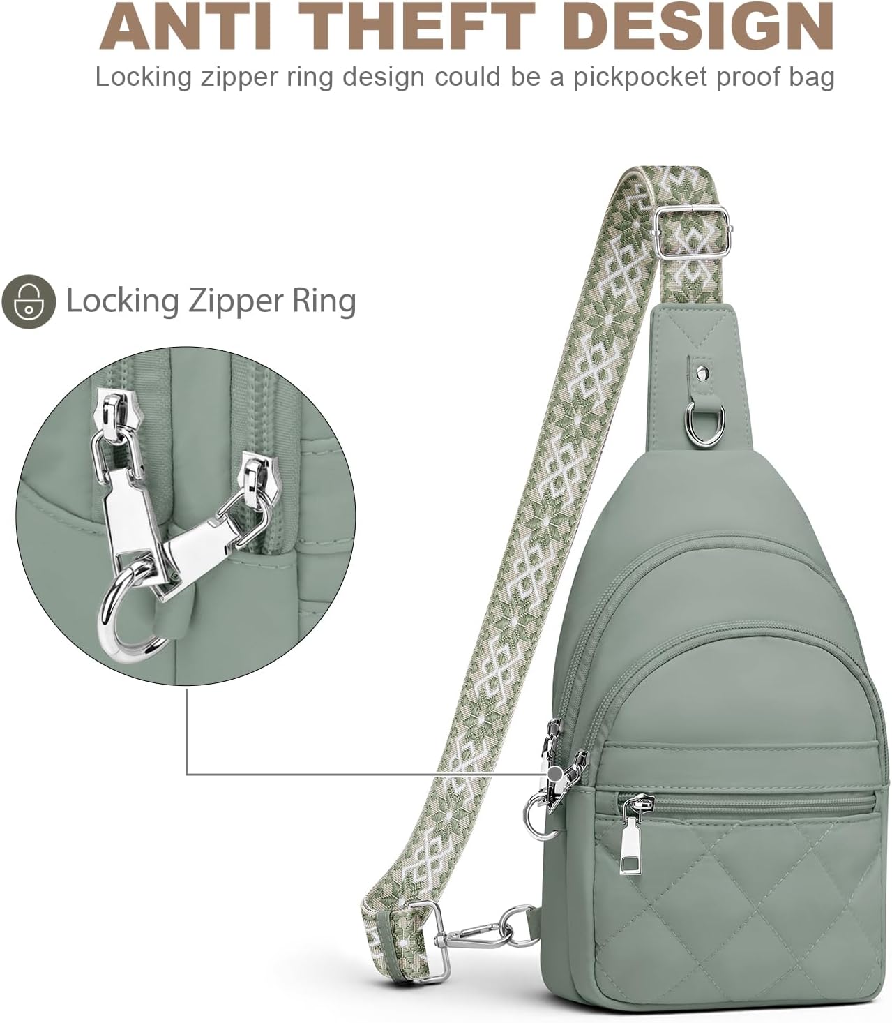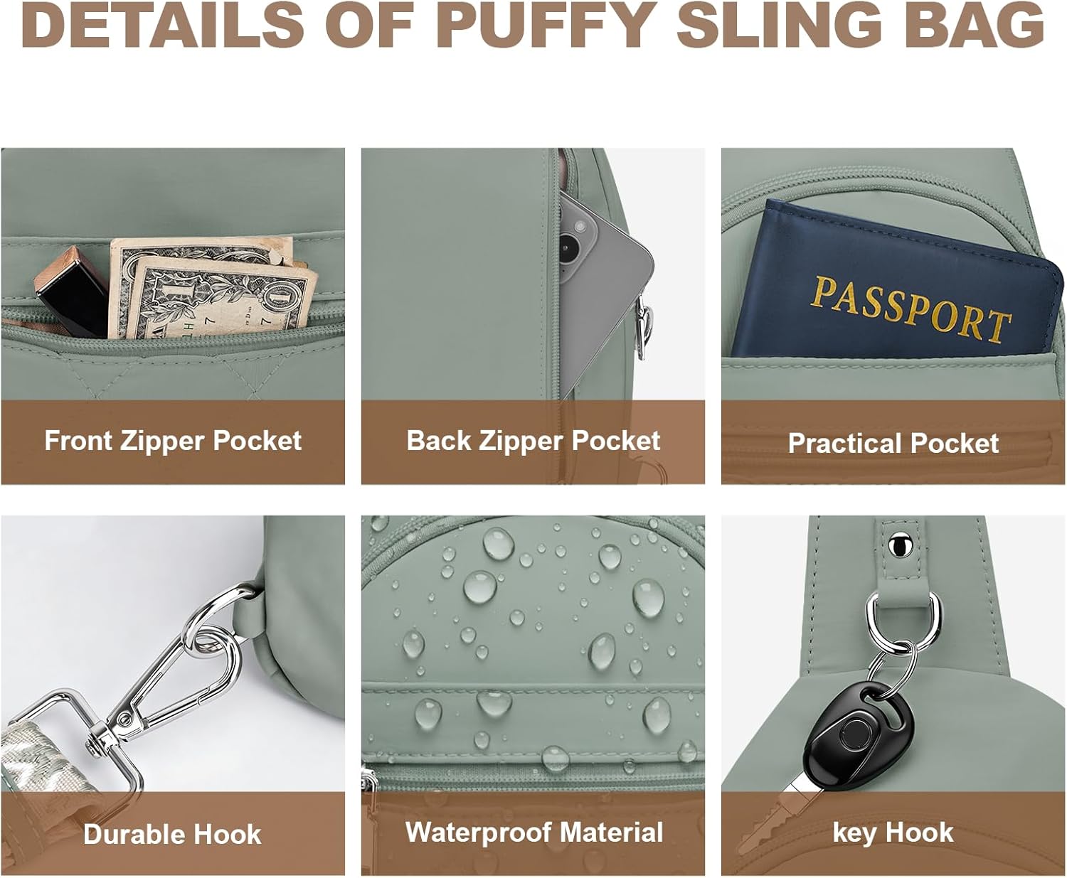 Sling Bag for Women, Anti-Theft RFID Crossbody Bag Nylon Sling Purse for Travel, Puffy Small backpack for Daily Hiking Sports Green