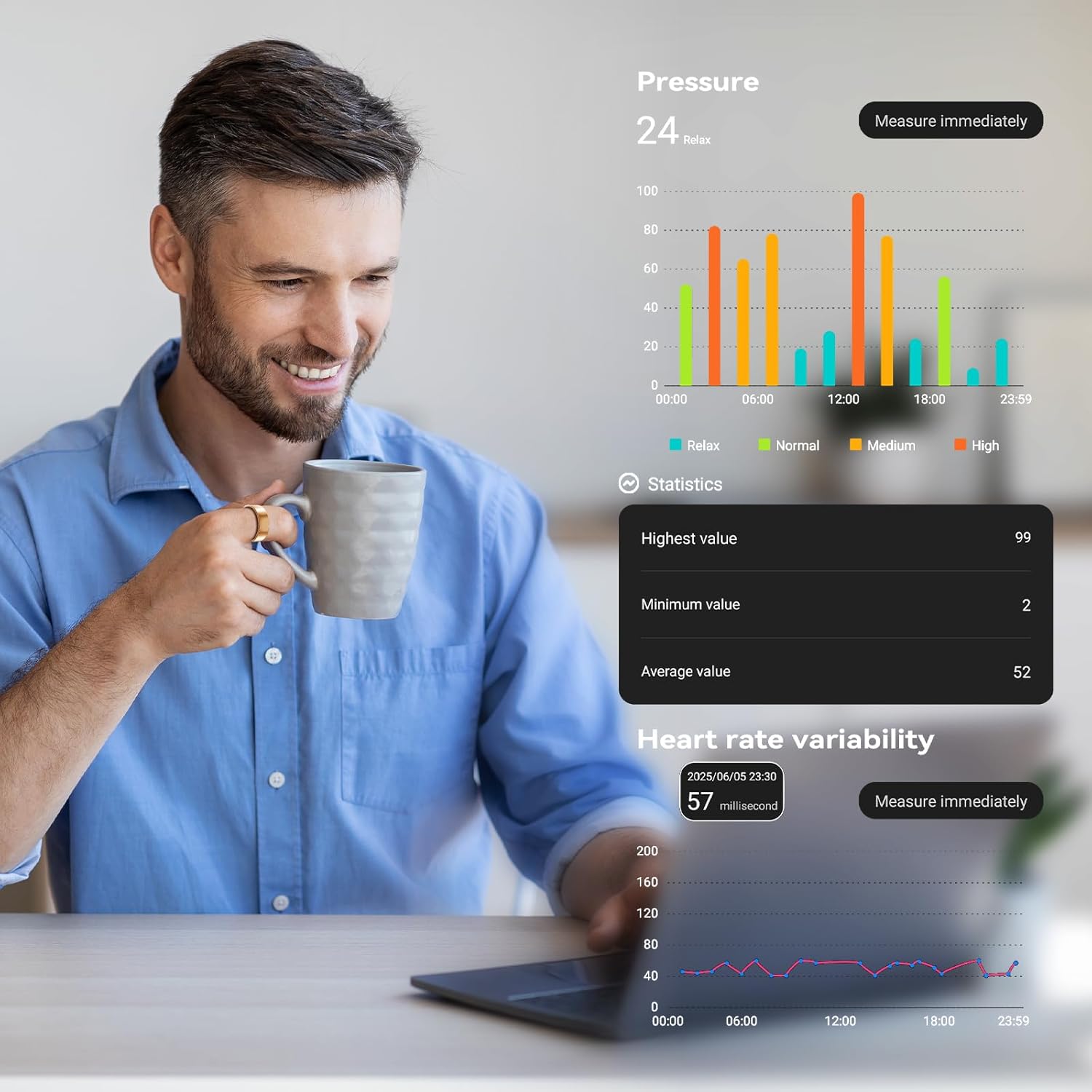 [Family Health Connection] The Smart Ring supports data sharing. Using the same ring, you can invite family members or friends through the app to learn about their activity patterns and health indicators. This intimate feature allows you to keep track of your loved ones’ daily lives and support your health journey together.