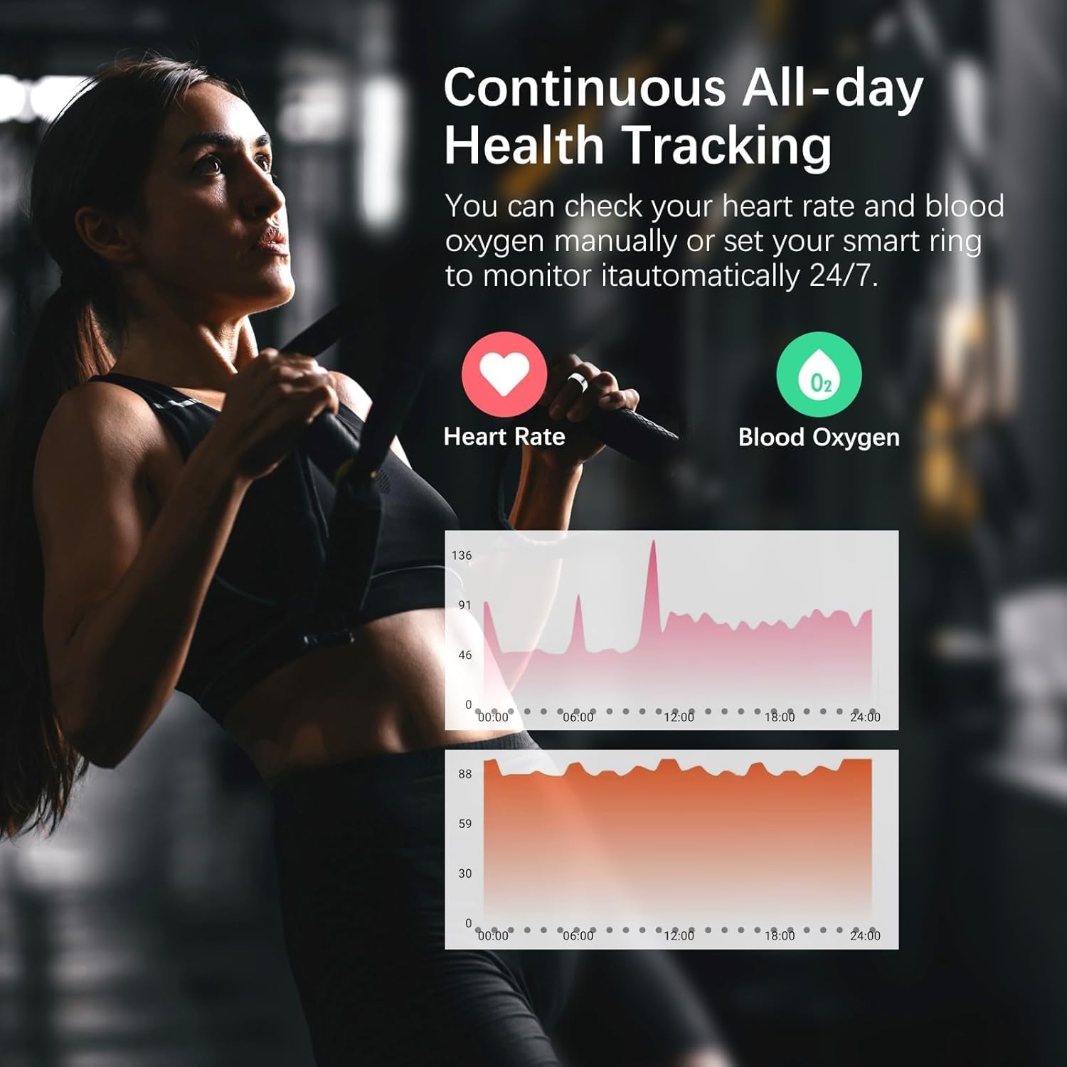 【Health Monitoring】The smart ring is equipped with high-precision and high-performance sensor, which can automatically monitoring your heart rate, blood oxygen, BP, sleep quality, women’s menstrual period etc.,
