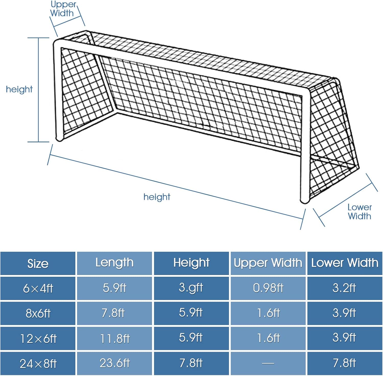 Suitable Goal Size: 3.6 m / 11.8 ft(length), 1.8 m / 5.9ft(height), 0.5 m/1.6ft(top width), 1.2 m/3.9ft(bottom width)