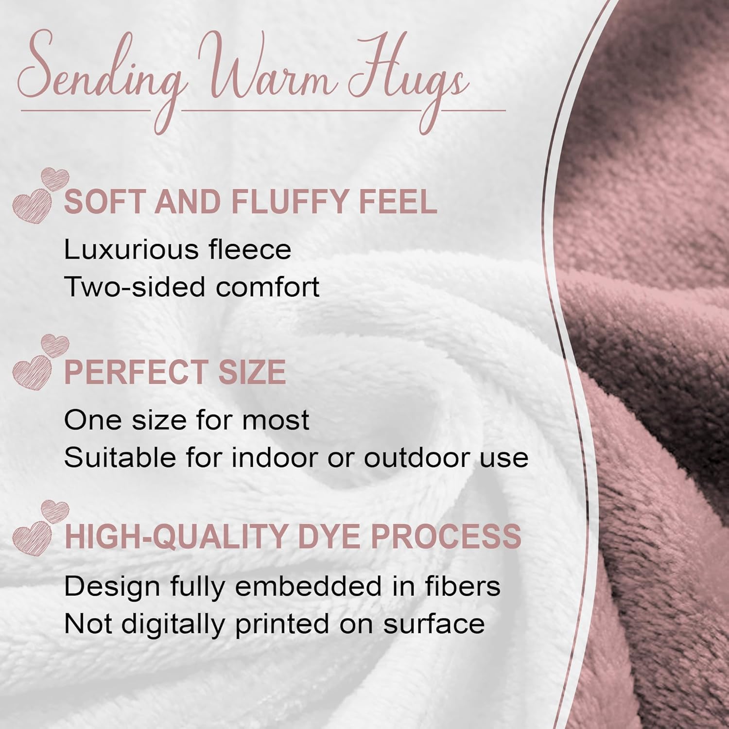 Share the blanket when you are together, or let it give a feeling of closeness when you are apart. Whether being used in the bedroom, living room, den, or any places in the house, this sweet gift offer your affection and warmth, even when you are not beside her.