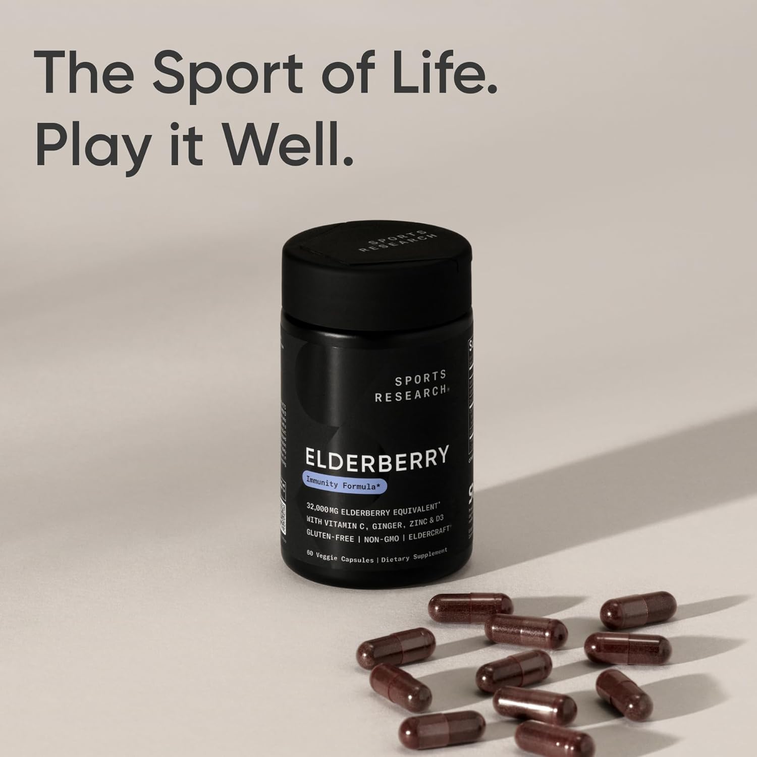 Sports Research® Daily Immune Support Elderberry with Zinc, Vitamin C, Ginger & Vitamin D3 5000iu – Gluten Free · Non-GMO Verified · Soy Free – 60 Veggie Capsules