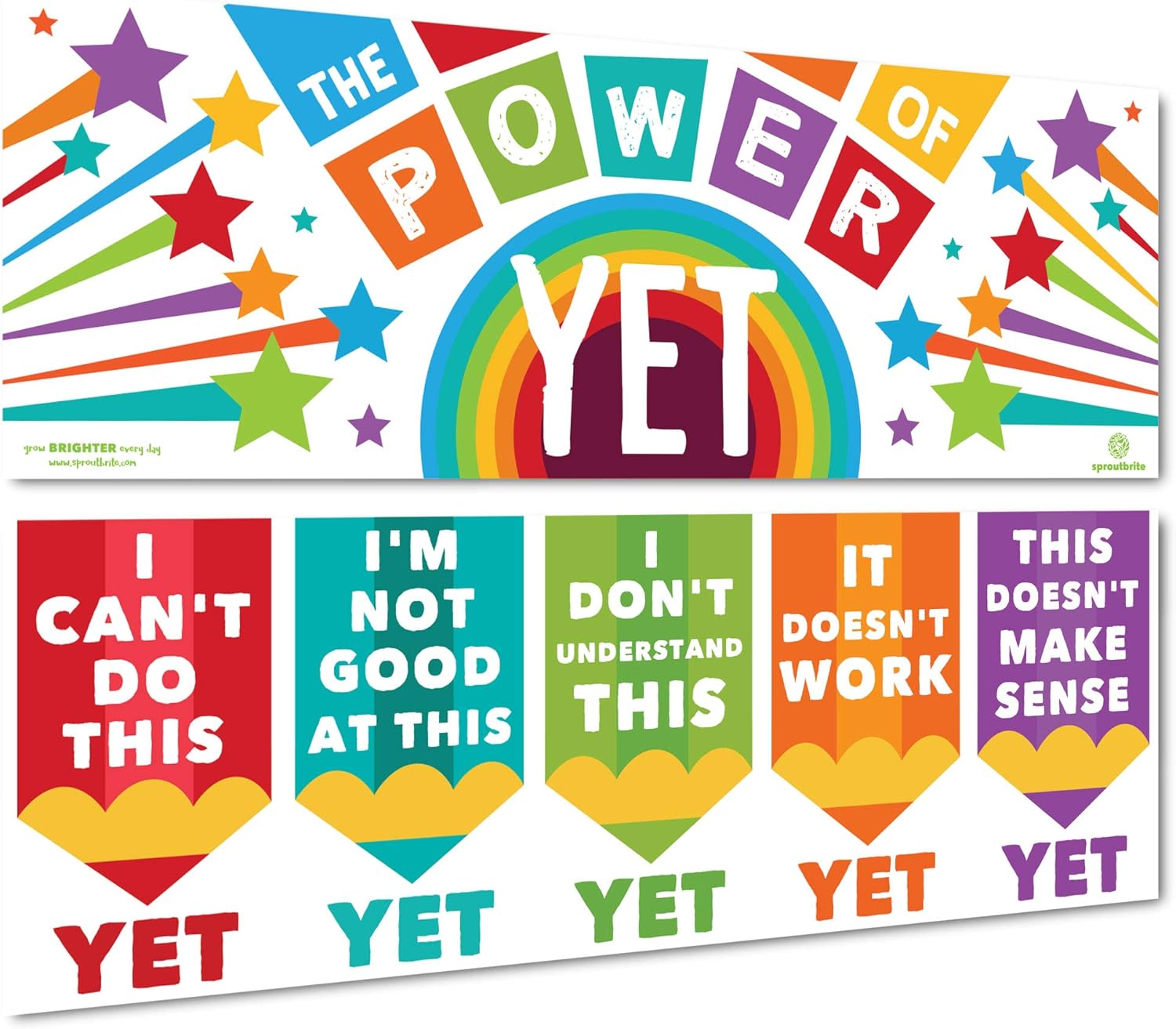 Sproutbrite Growth Mindset Classroom Decorations – Banner Posters for Teachers – Bulletin Board and Wall Decor for Pre School, Elementary (Non Laminated)