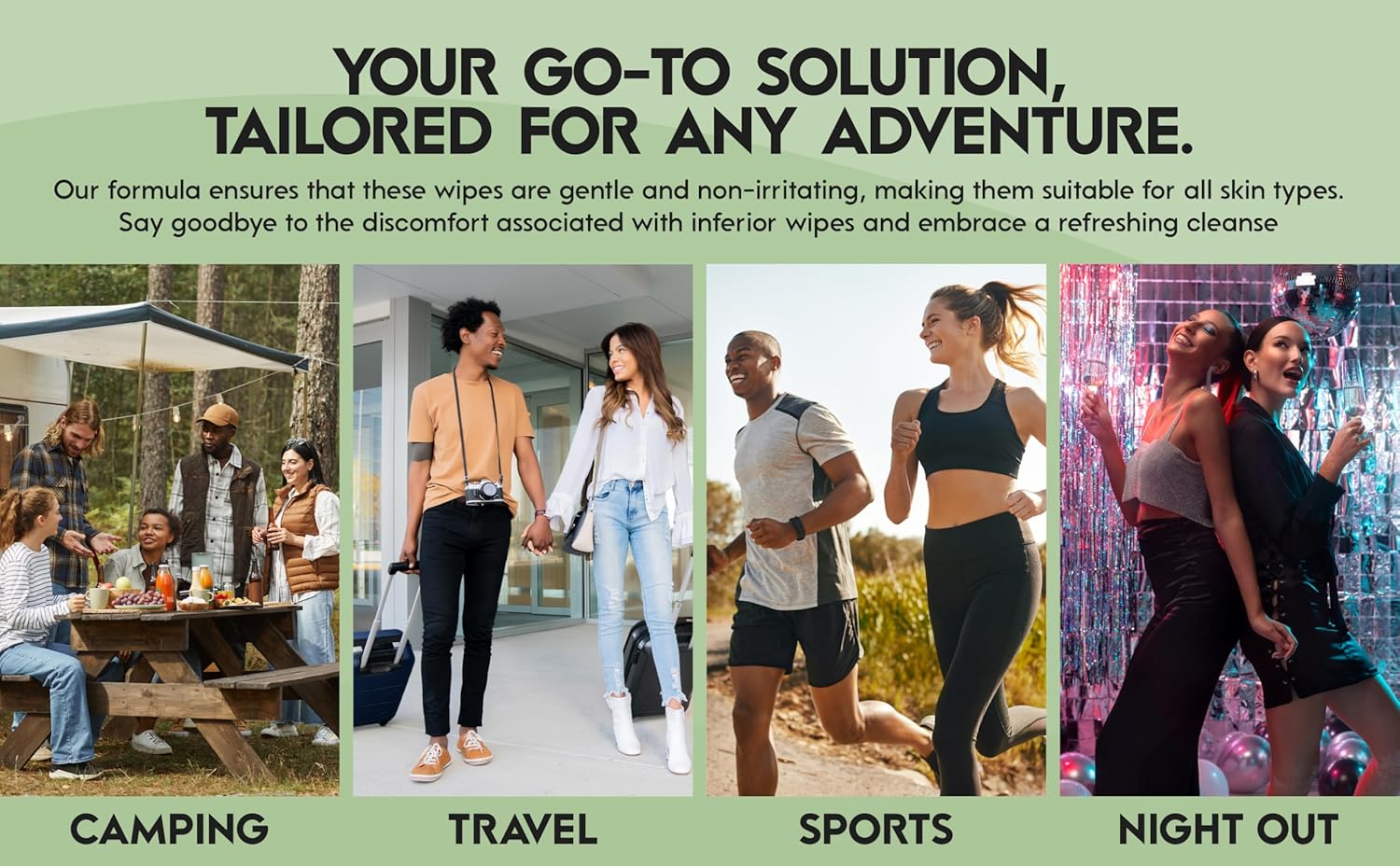 🏃Convenient On-the-Go Packs: Each box contains 60 individual packs of wet wipes, making them incredibly convenient for your on-the-go lifestyle. Perfect for camping, backpacking, travel or even a night out, these portable packs fit easily in your bag, purse, or pocket, ensuring you always have a refreshing wipe at your fingertips.
