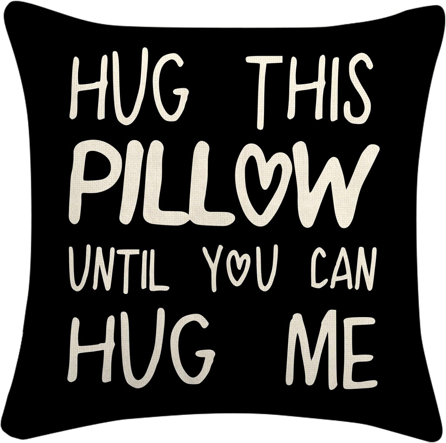 Sufamb Hug This Pillow Until You Can Hug Me Throw Pillow Covers, 18 x 18 Pillow Case, for Boyfriend Girlfriend Birthday Gifts, Long Distance Relationships Gifts (Black)(18x18in)