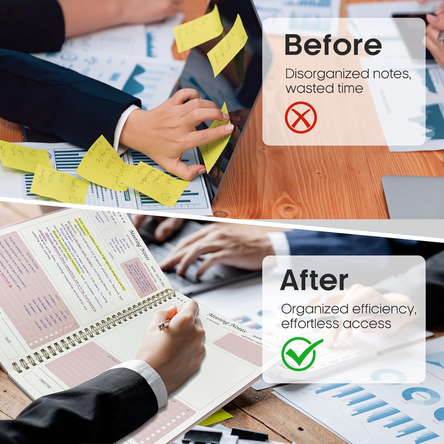 Enhance Meeting Efficiency – By utilizing a meeting notebook, you can effectively manage and streamline meeting details, ensuring that discussions, decisions, and action items are accurately captured and organized. This promotes a more efficient workflow, allowing for easy reference and retrieval of information during and after the meeting.