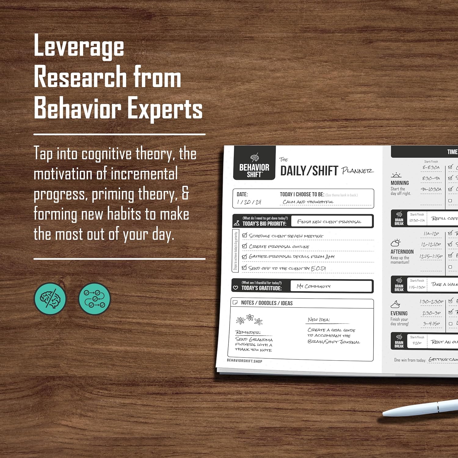 The Behavior Shift Daily Desktop Planner – 8.5 X 11 Inches undated Tear off Sheets – 13 week planning pad with checklist – Brain Dump Notepad for work, school & home organizer