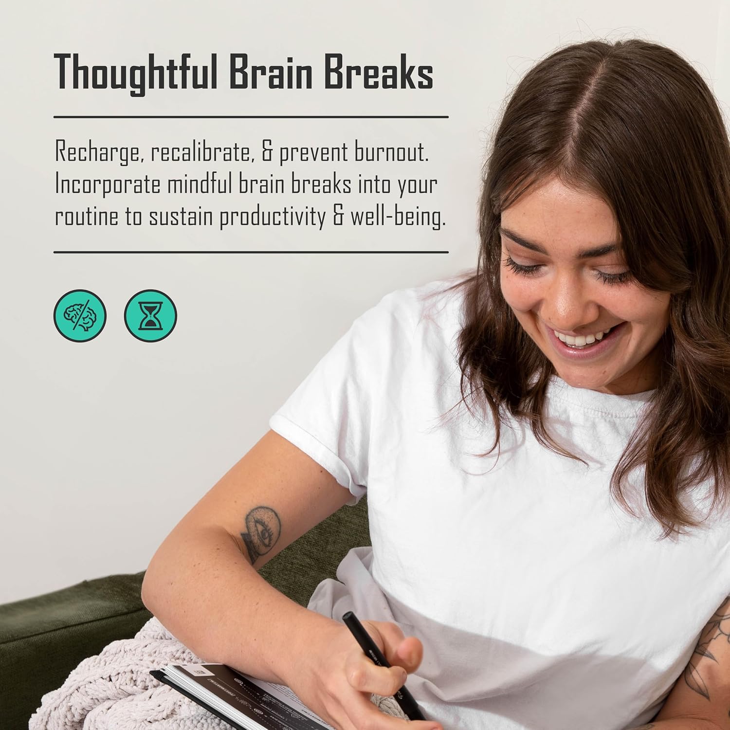 DAILY BRAIN BREAKS; HELPS YOU FEEL RECHARGED: Give your brain the pause it deserves! use this Planner Pad to pre plan 3 intentional brain breaks to reset, refocus & recharge. Whether it’s a walk, a sketch or watering plants, these mini time blocking resets give your prefrontal cortex a chance to step back: Reduce stress, Clear mental clutter & spark fresh ideas. Note them into your weekly planner or habit tracker boosts follow through – because if it’s not written, it won’t get done.