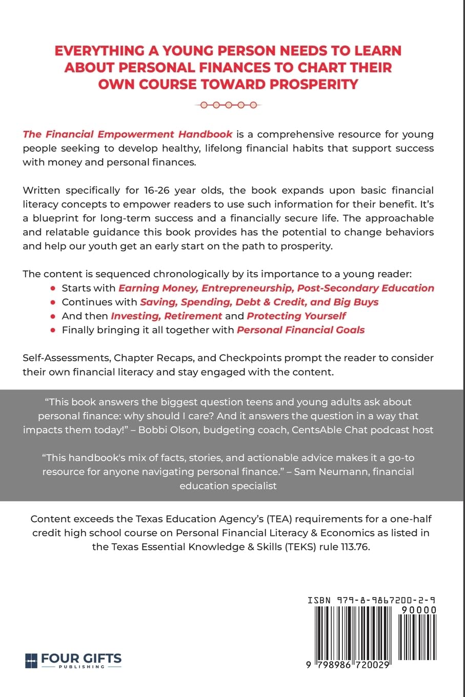 The Financial Empowerment Handbook is a comprehensive resource for young people seeking to develop healthy, lifelong financial habits in order to be successful with money and personal finances. Targeting the 16-26 year old age bracket, the book expands upon basic financial literacy concepts and empowers readers to use such information for one’s benefit, providing a blueprint for long-term success and financially secure lives. By providing practical guidance on saving, investing, responsible spending, budgeting and more, this book has the potential to change behaviors and help our youth start early on the path to prosperity.