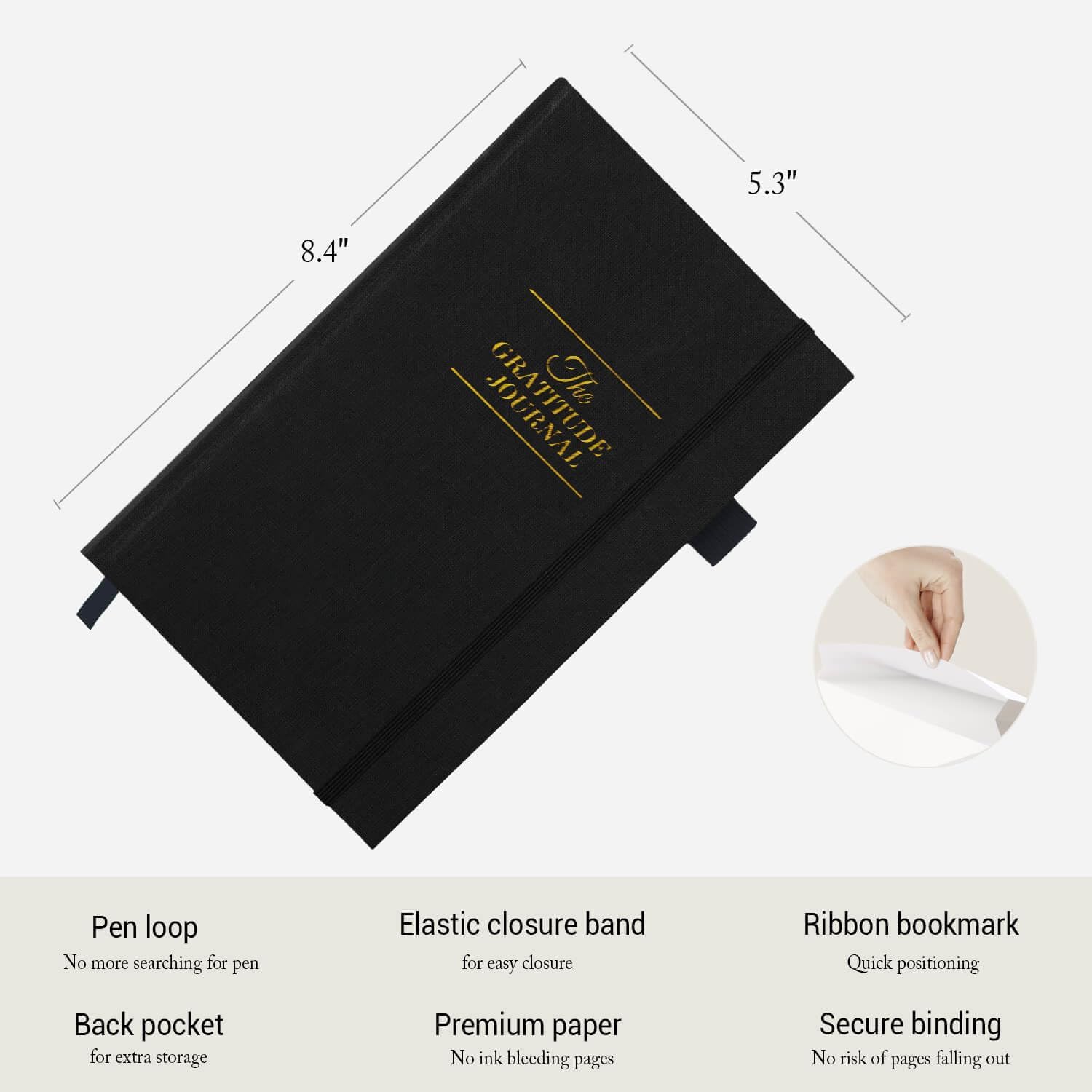 What’s udpated? Secure binding, no risk of pages falling out. Sturdy pen loop, no more searching for pen. Back pocket for extra storage. Elastic band for easy closure. Premium 100gsm paper, no bleed through. Undated, lasts for 6 months. Ribbon bookmark for quick navigation.