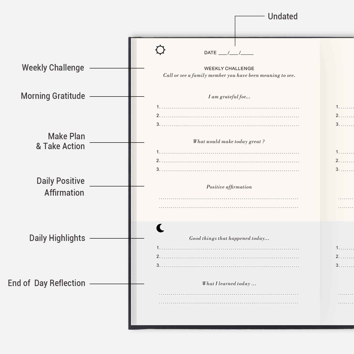 Undated & Strong Binding- The inside of the daily journal is undated, which means you can start whenever you’re ready! And it has thick pages and strong bindings, with no risk of pages falling out!