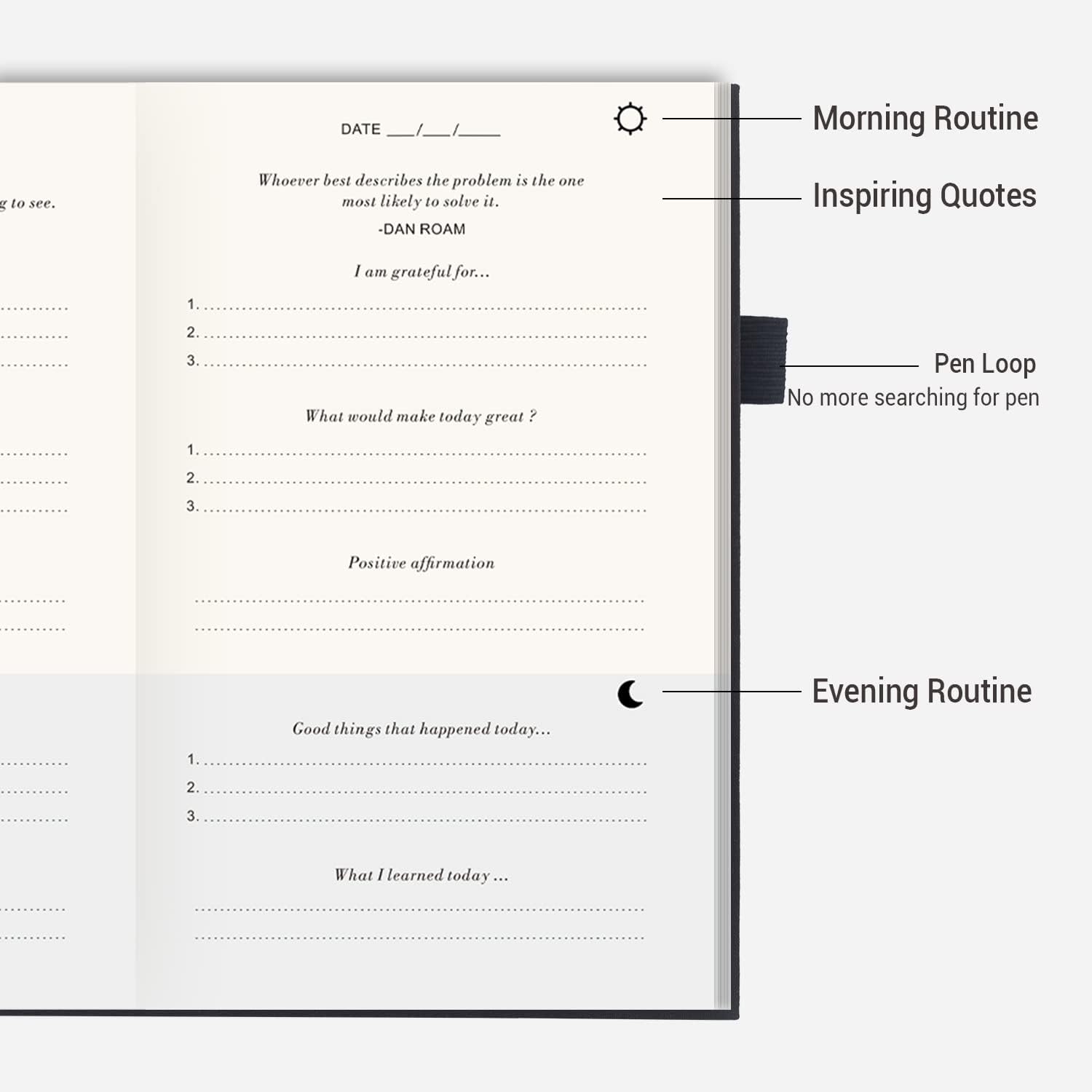 The motivational journal lasts for 6 months and it’s designed with a scientific layout that will effectively help you develop a grateful attitude toward life. It features morning routine section and evening routine section.