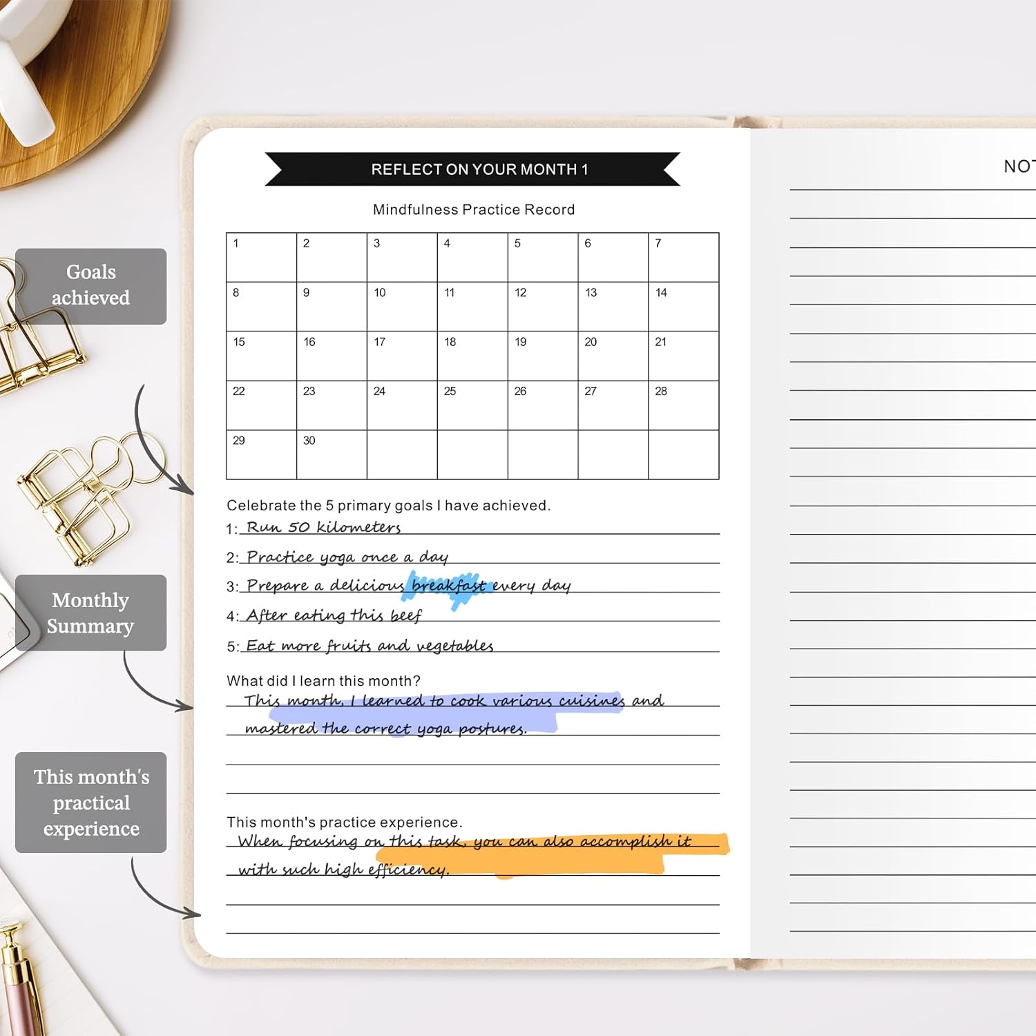 Reflect on each month to better summarize your mindfulness practice and stay positive.