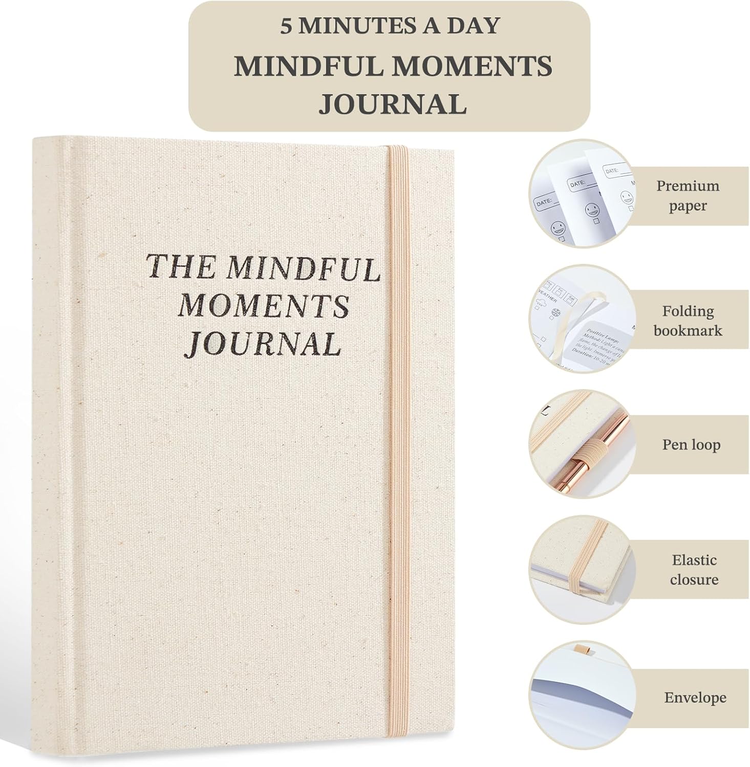 SIZE:A5 size, this mindfulness book features a linen cover, measuring (8.27*5.8)inches, and comes with a pen case, elastic strap, and envelope.Exquisite workmanship creates a comfortable feeling for your writing.