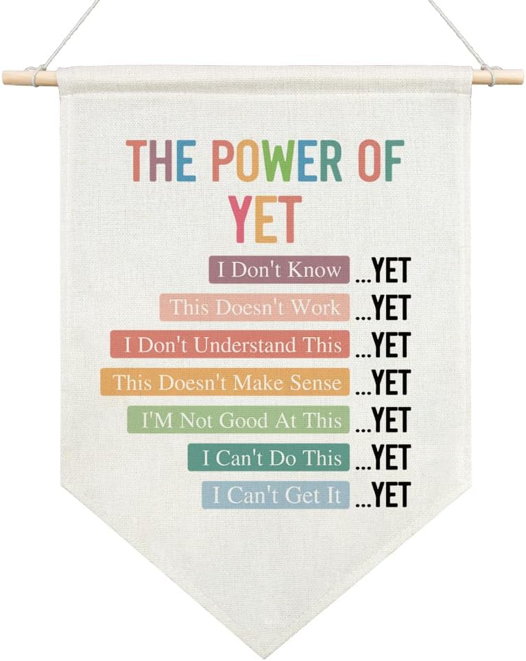 The Power of YET Canvas Hanging Pennant Flag, Growth Mindset Mental Health Therapy Office School Counselor Classroom Kids Room Decor, Motivational Gifts for Family Friend Boss Coworker BFF